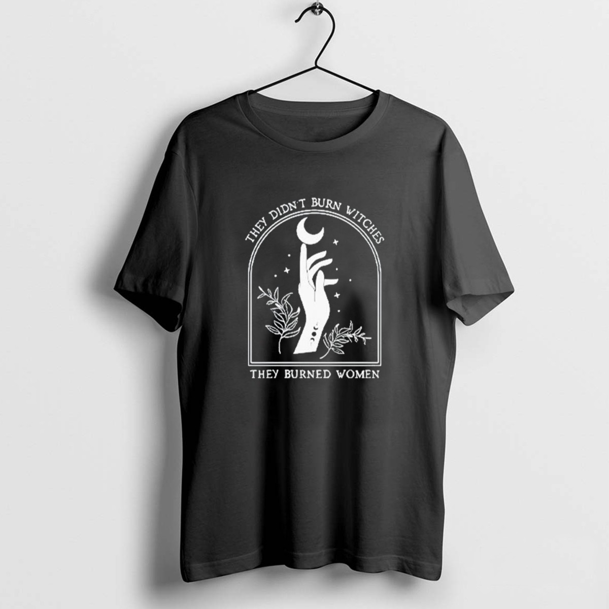 Be the first to review “They Didnt Burn Witches They Burned Women Feminism Halloween Crescent Moon And Hand T-Shirt”