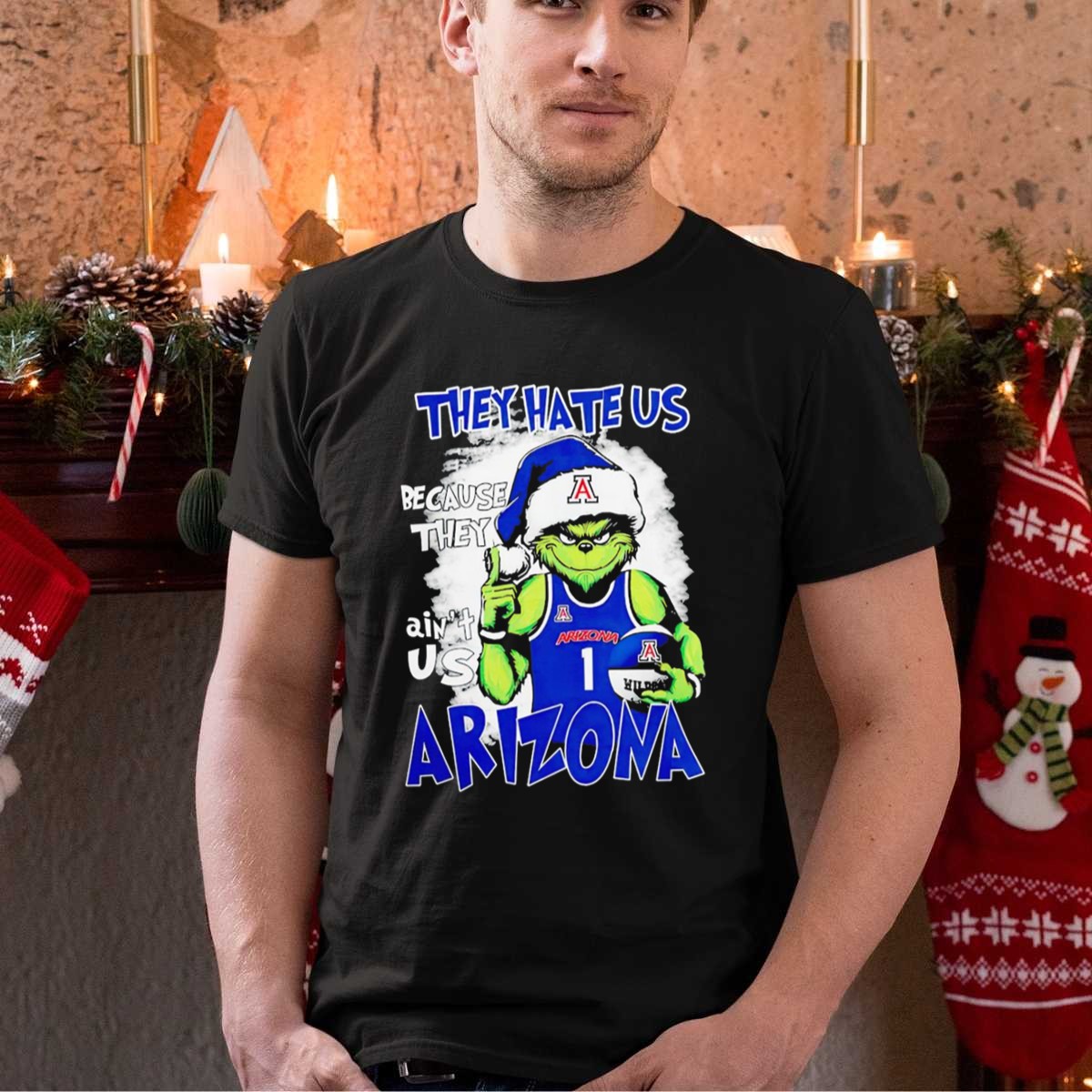 Embrace the holiday spirit with our “They Hate Us Because They Ain’t Us” Grinch Arizona Christmas Basketball T-Shirt! Perfect for basketball fans and Grinch lovers alike, this fun and festive shirt is ideal for casual wear, themed events, or just showing off your team pride during the holiday season. Made with a fan-made design printed right here in the USA, this shirt combines style and comfort for all-season wear.