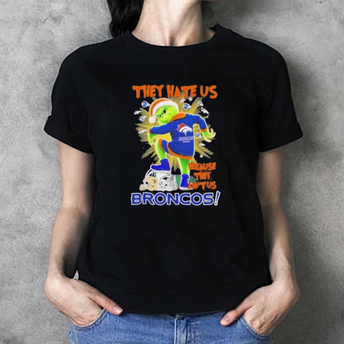 Be the first to review “They Hate Us Because They Aint Us Grinch Denver Broncos Nfl Christmas T-Shirt”
