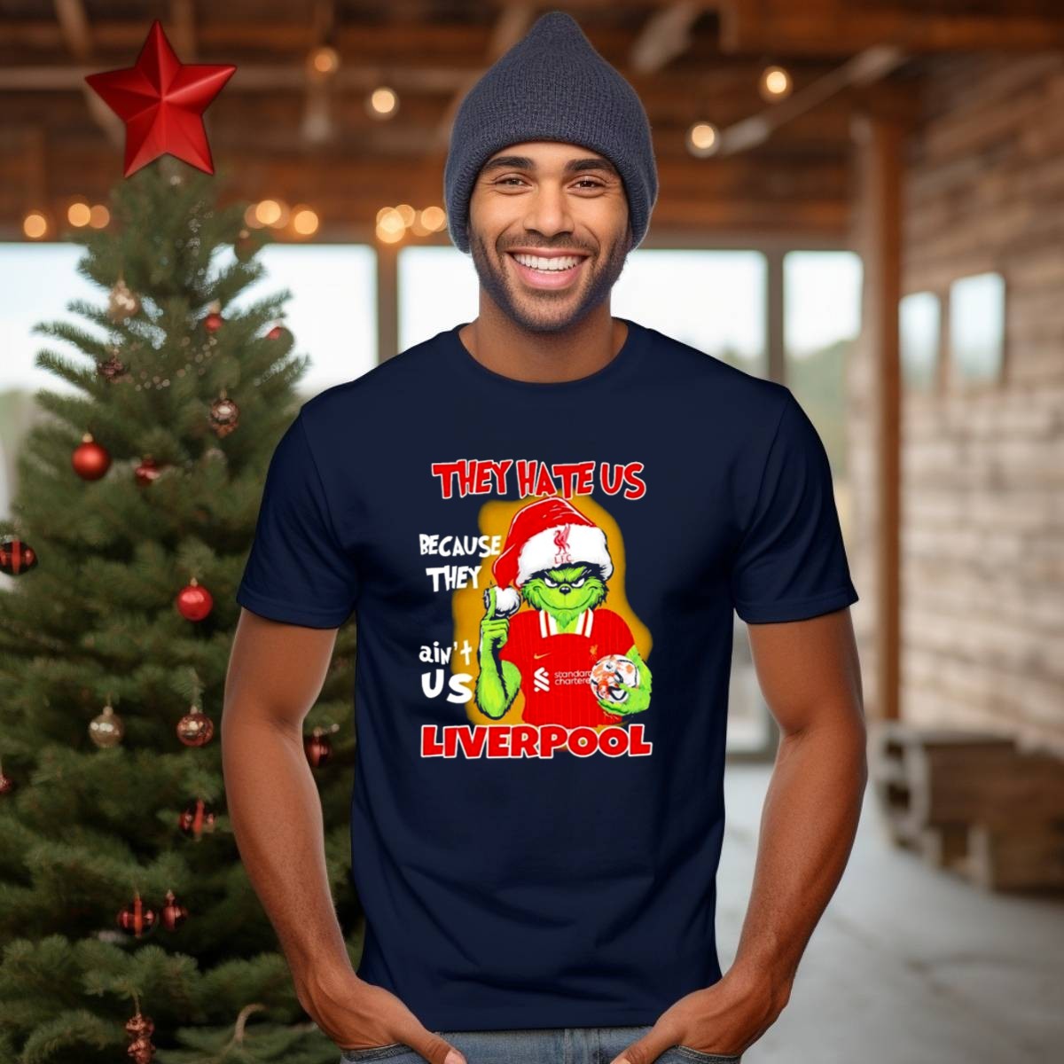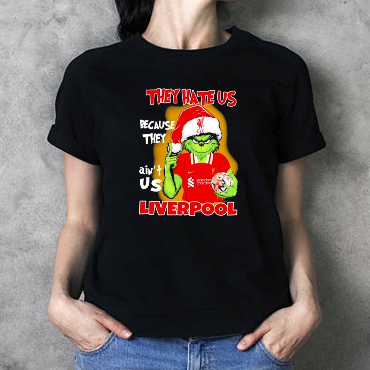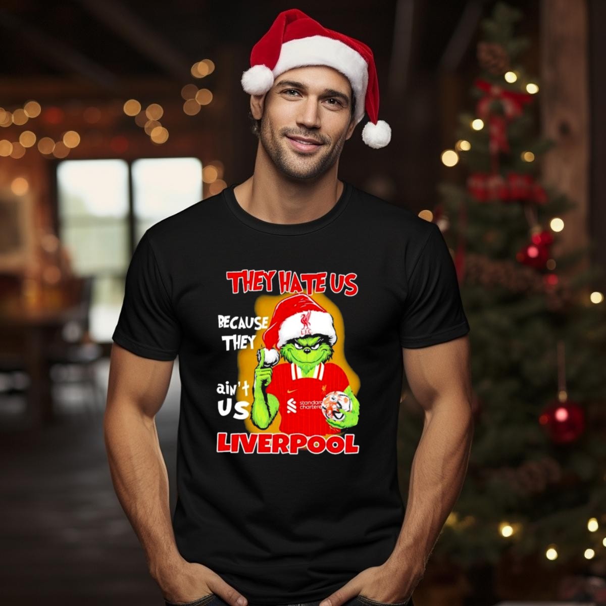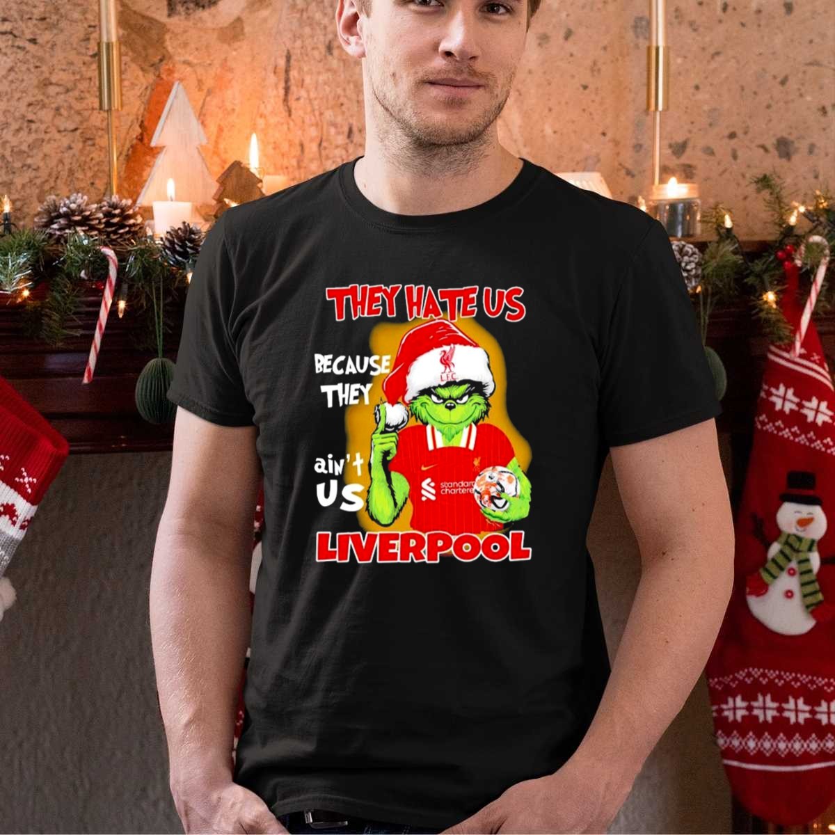 Embrace the spirit of the season with our “They Hate Us Because They Aint Us” Grinch Liverpool FC Christmas T-Shirt! Perfect for die-hard Liverpool fans who want to showcase their team pride with a festive twist, this shirt is ideal for casual gatherings, themed events, or simply enjoying the holidays in style. Its unique fan-made design captures the fun and excitement of the season while celebrating your love for the Reds. Made in the USA, this shirt promises comfort and durability, making it a must-have for any fan’s wardrobe.