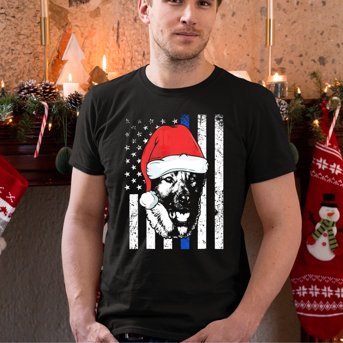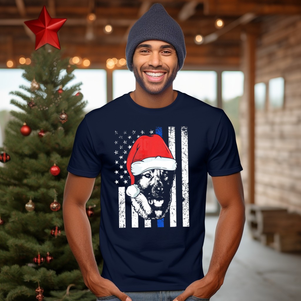 Celebrate the holiday season with our Thin Blue Line Christmas German Shepherd Santa Hat Flag T-Shirt, a perfect blend of festive cheer and canine pride. This shirt is designed for dog lovers and law enforcement supporters alike, making it an ideal choice for casual gatherings, themed events, or just everyday wear. With its unique fan-made design printed in the USA, you can showcase your passion for both your furry friend and your values in style!