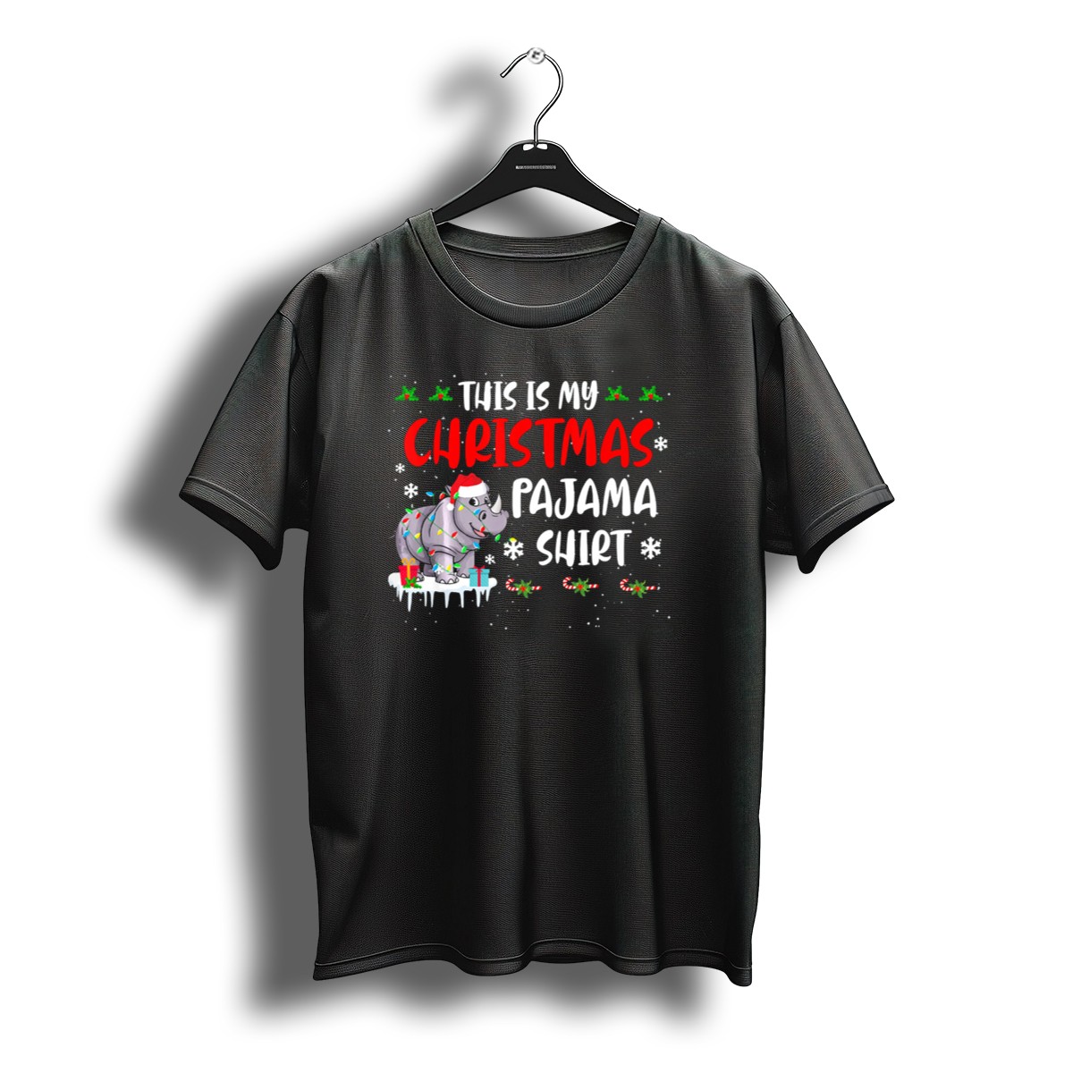 This Is My Christmas Pajama Rhino Shirt Holiday Lights Santa Hat Snowflakes T-Shirt