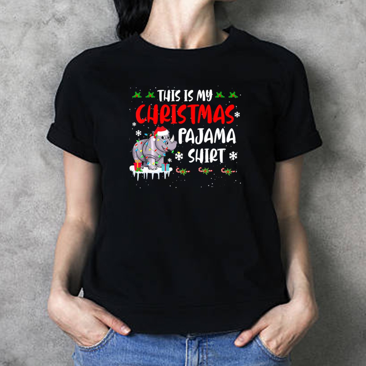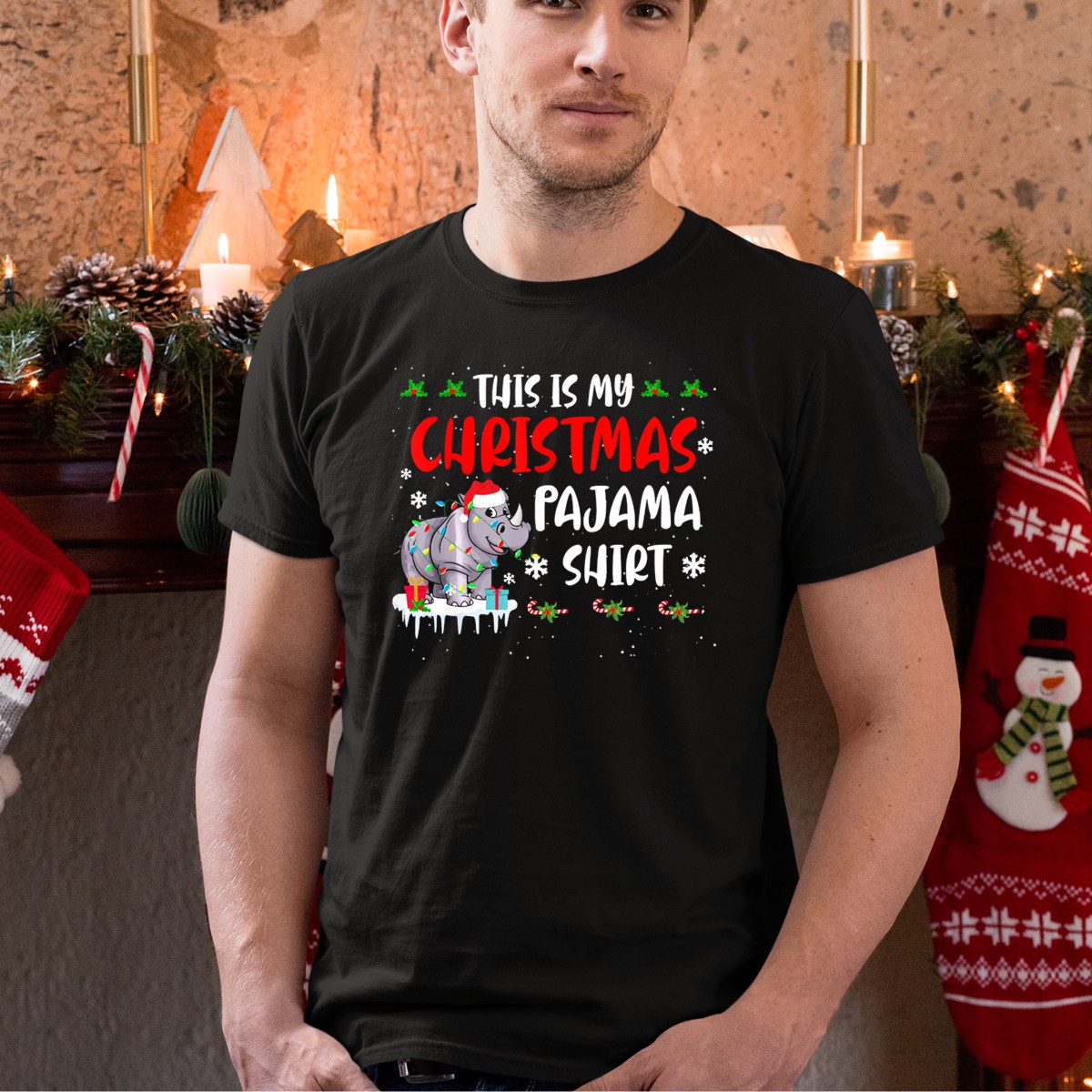 Be the first to review “This Is My Christmas Pajama Rhino Shirt Holiday Lights Santa Hat Snowflakes T-Shirt”