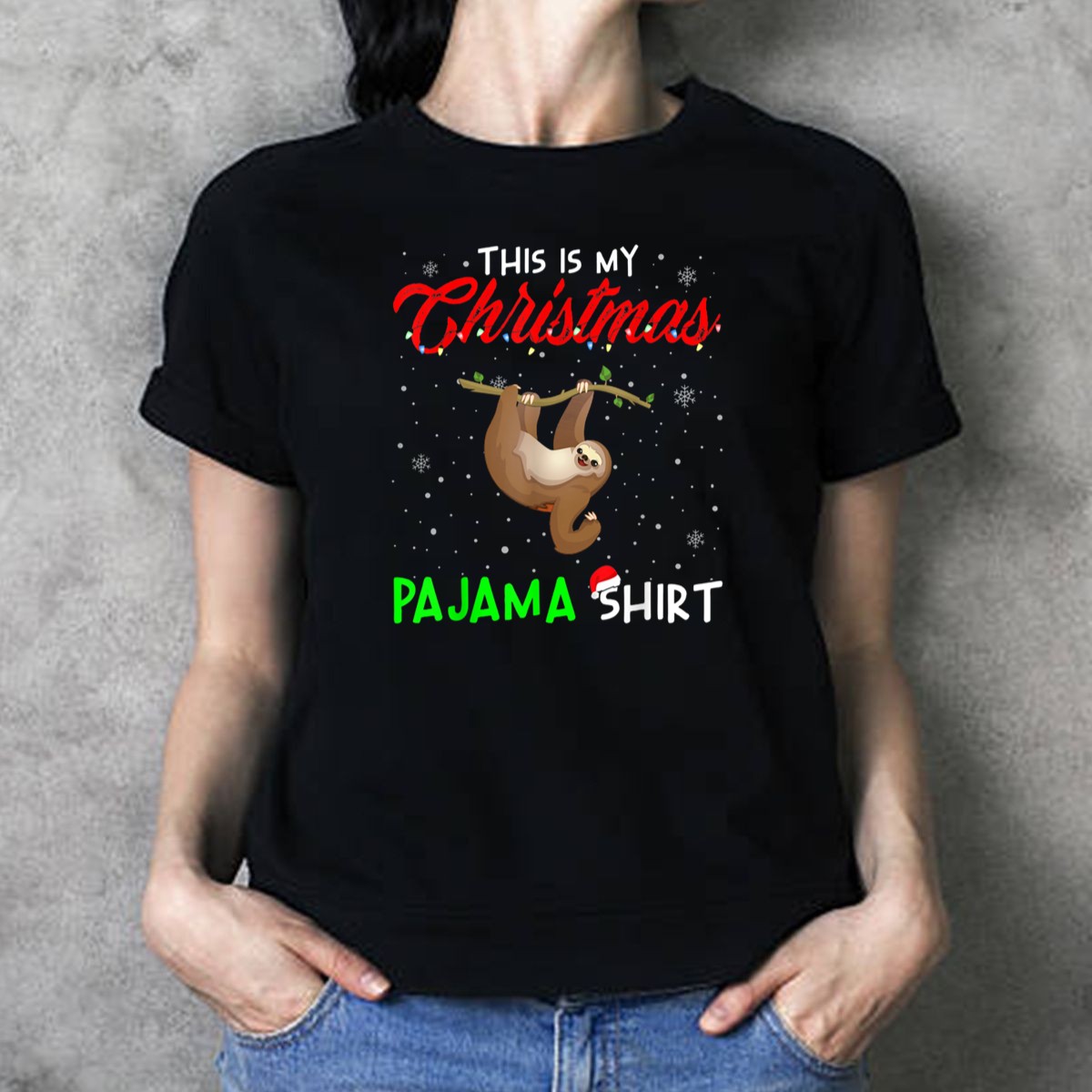 Celebrate the holiday season in style with our “This Is My Christmas Pajama Shirt” featuring an adorable sloth design. Perfect for cozy family gatherings, themed events, or simply lounging at home, this fan-made graphic tee combines festive spirit with a touch of whimsy. Crafted for comfort and made in the USA, it’s a delightful addition to your casual wardrobe that stands out for its unique charm and playful vibe.
