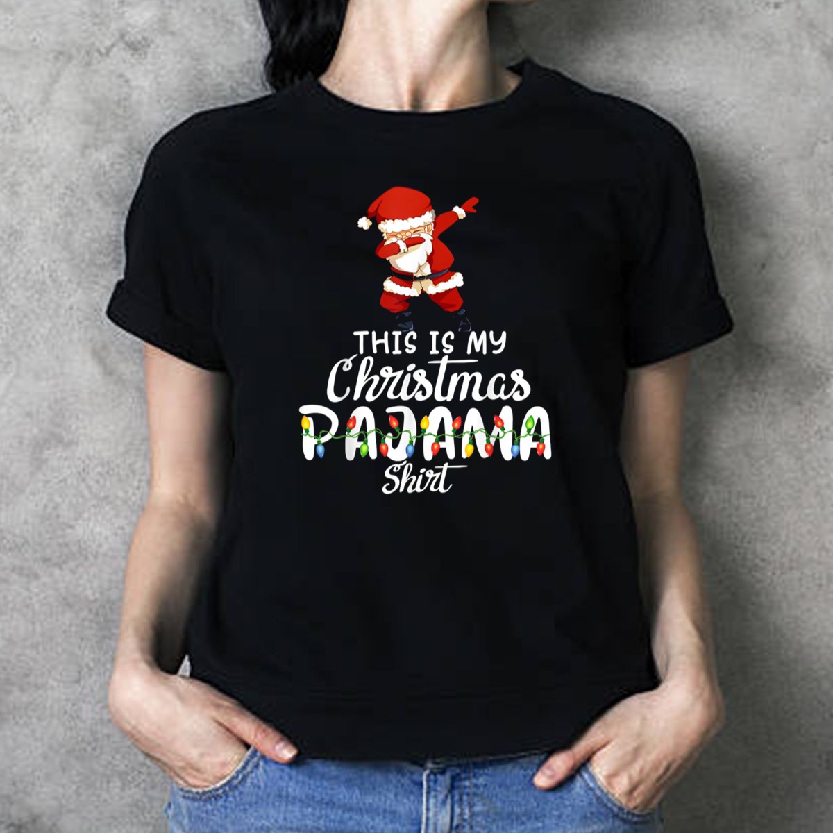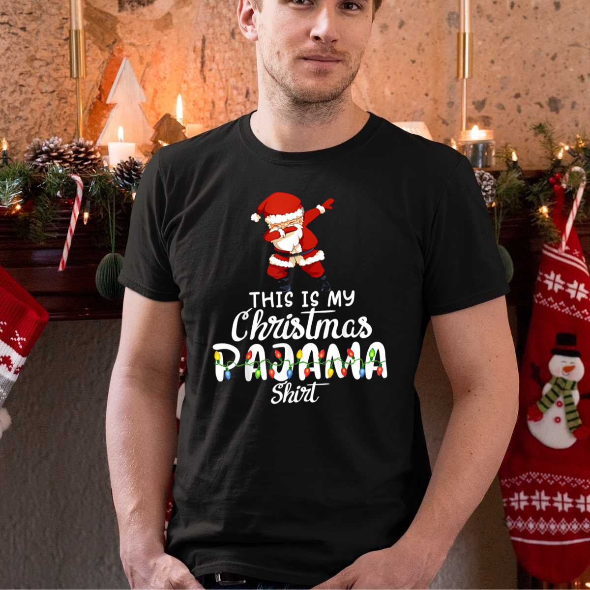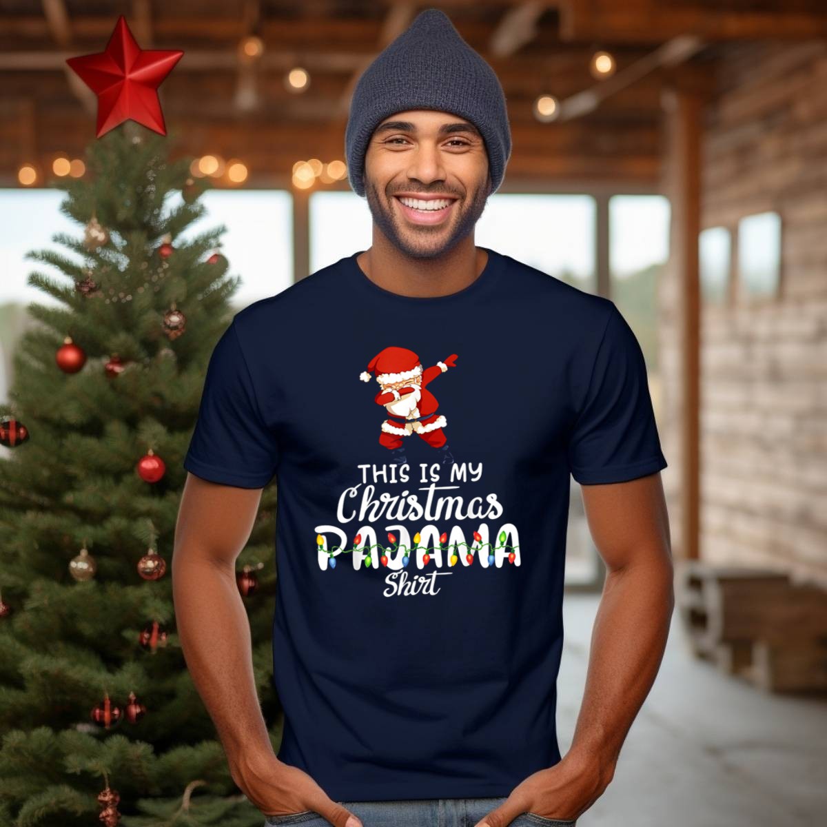 Celebrate the festive season with our “This Is My Christmas Pajama Shirt” featuring a playful dabbing Santa surrounded by cheerful lights! Perfect for anyone looking to add a fun twist to their holiday wardrobe, this shirt is ideal for casual get-togethers, themed events, or simply lounging in style at home. Made with love and care in the USA, this fan-made design captures the joy of Christmas in a unique and stylish way, making it a must-have for all holiday enthusiasts!