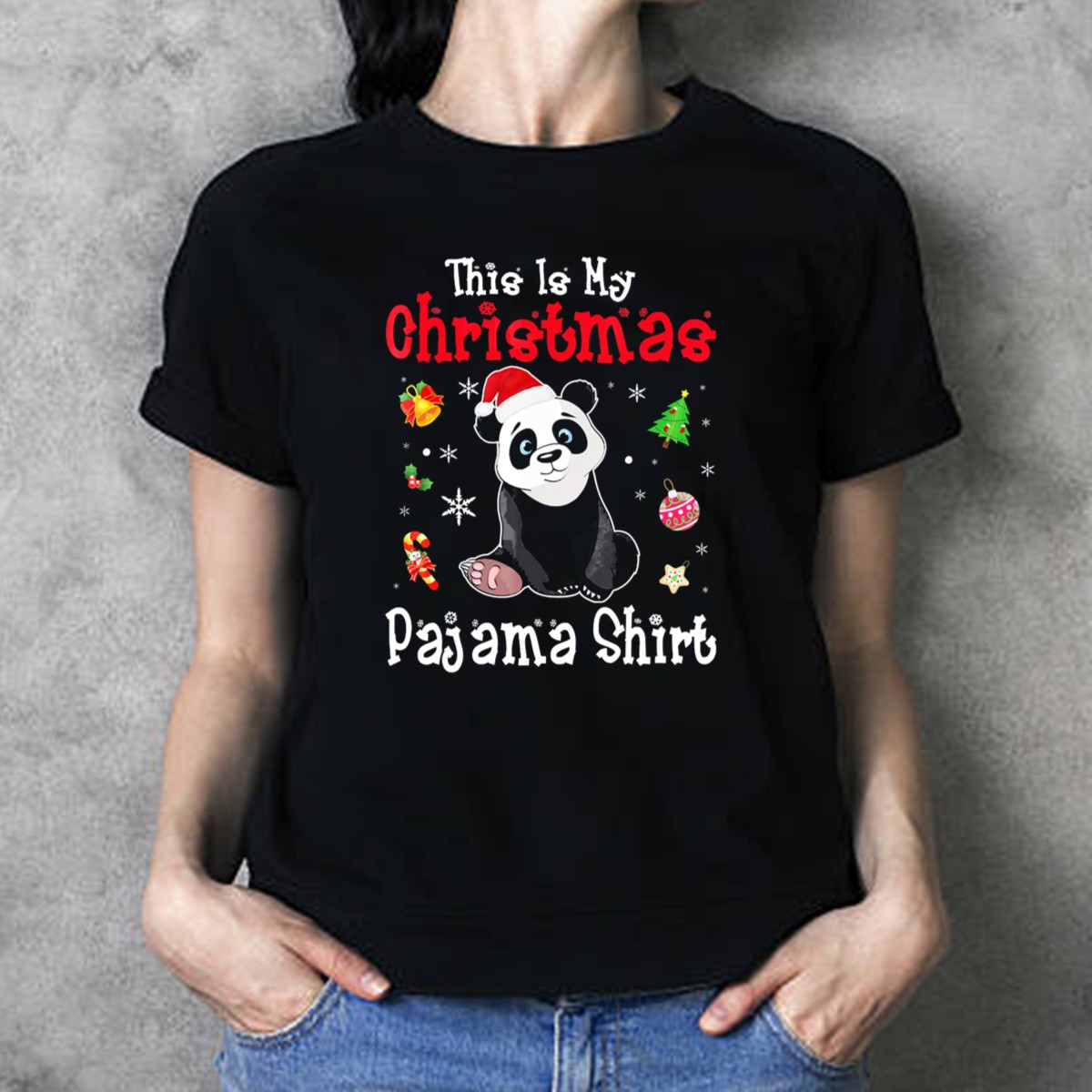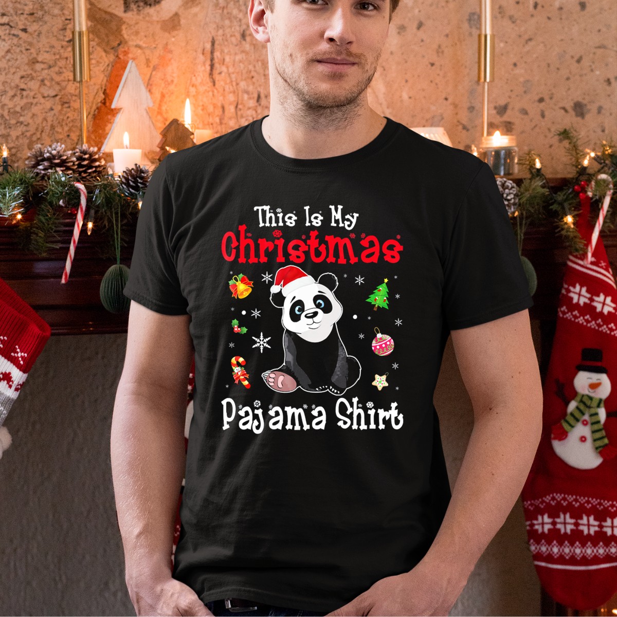 Be the first to review “This Is My Christmas Pajama Shirt Panda Santa Hat Snowflakes T-Shirt”