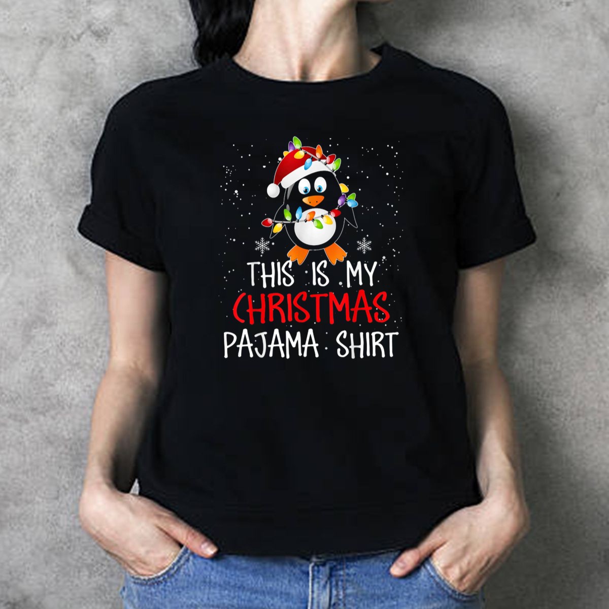 Be the first to review “This Is My Christmas Pajama Shirt Penguins Santa Lights Snowflakes T Shirt”