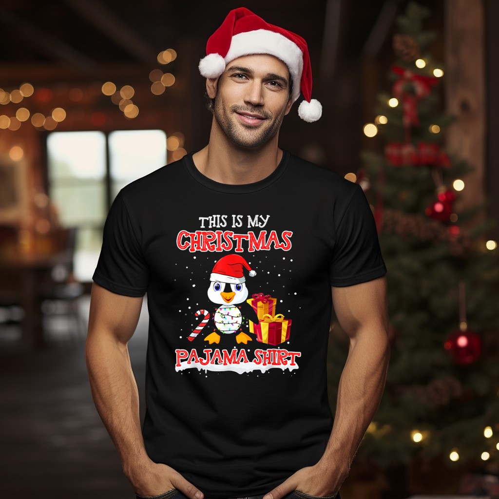 Celebrate the festive season with our “This Is My Christmas Pajama Shirt Santa Penguin T-Shirt”! Perfect for anyone who loves to spread holiday cheer, this shirt is ideal for cozy family gatherings, themed events, or simply relaxing at home during the holidays. Featuring a playful penguin design, this fan-made shirt is not only a fun addition to your wardrobe but also a great conversation starter. Proudly printed in the USA, it combines comfort and style for all your holiday celebrations.