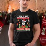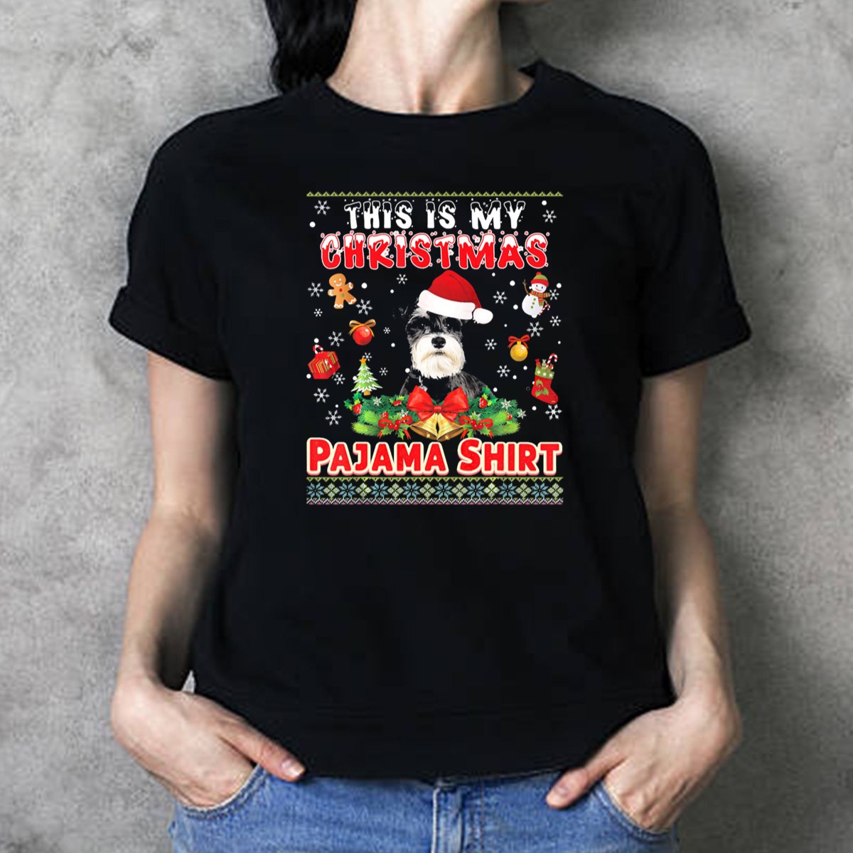 Celebrate the holiday spirit with our “This Is My Christmas Pajama Shirt” featuring an adorable Schnauzer wearing a Santa hat amidst a flurry of snowflakes and gingerbread ornaments. Perfect for dog lovers and festive gatherings, this fun and cozy T-shirt is ideal for casual wear, themed events, or simply lounging around during the holiday season. Made for comfort and style, this fan-made design is proudly printed in the USA, making it a unique addition to your festive wardrobe.