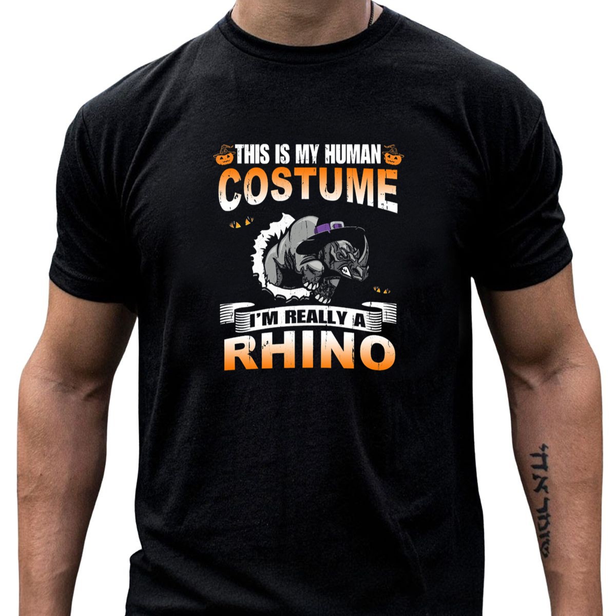 Unleash your wild side this Halloween with our “This Is My Human Costume I’m Really A Rhino” T-Shirt! Perfect for animal lovers and those looking to add a fun twist to their Halloween festivities, this shirt is a playful nod to the spirit of the season. Whether you’re heading to a themed event, a casual get-together, or just want to showcase your quirky humor in everyday life, this fan-made design will surely turn heads and spark conversations. Proudly printed in the USA, it combines comfort and creativity for a look that’s as unique as you are.