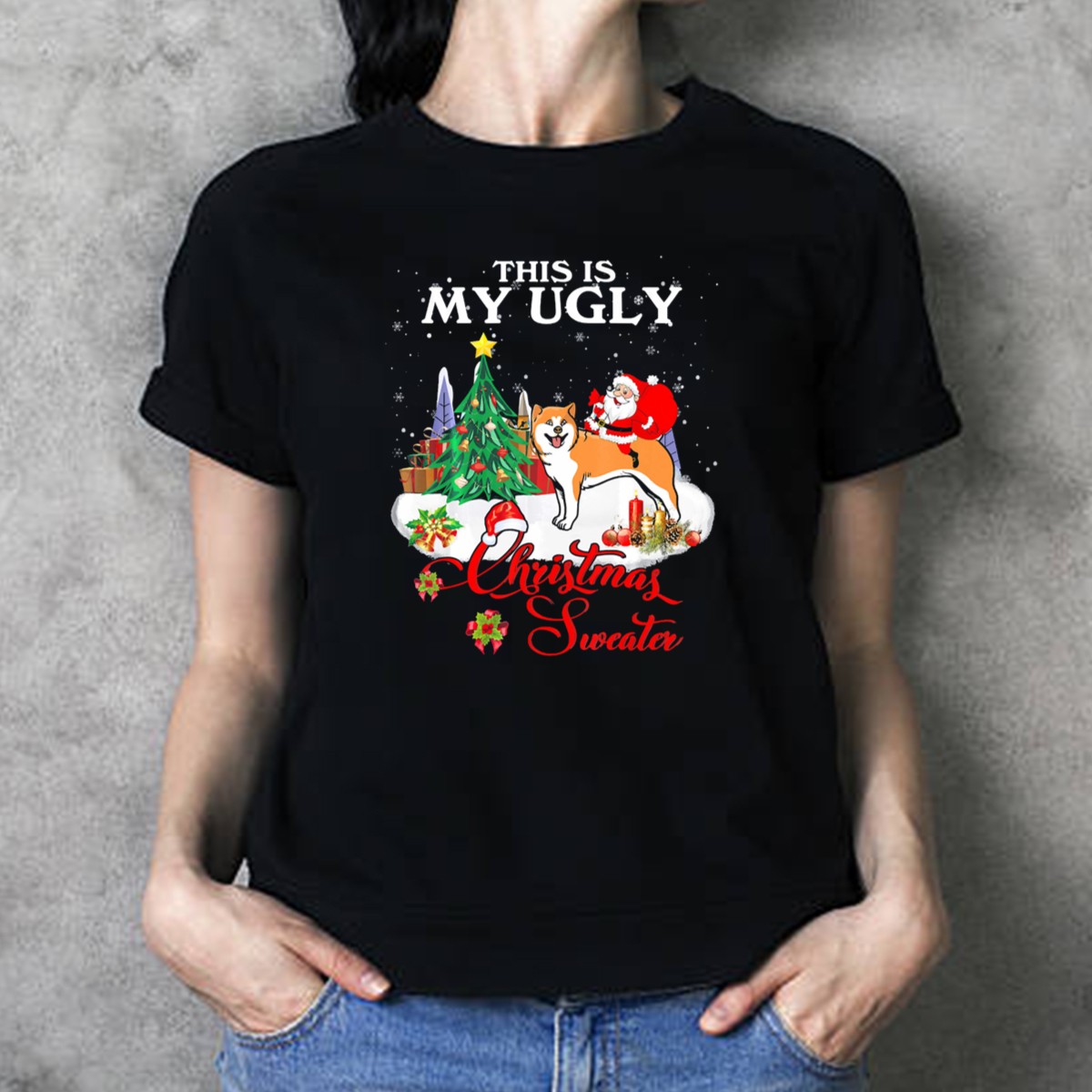 Be the first to review “This Is My Ugly Christmas Sweater Santa Riding Akita T-Shirt”