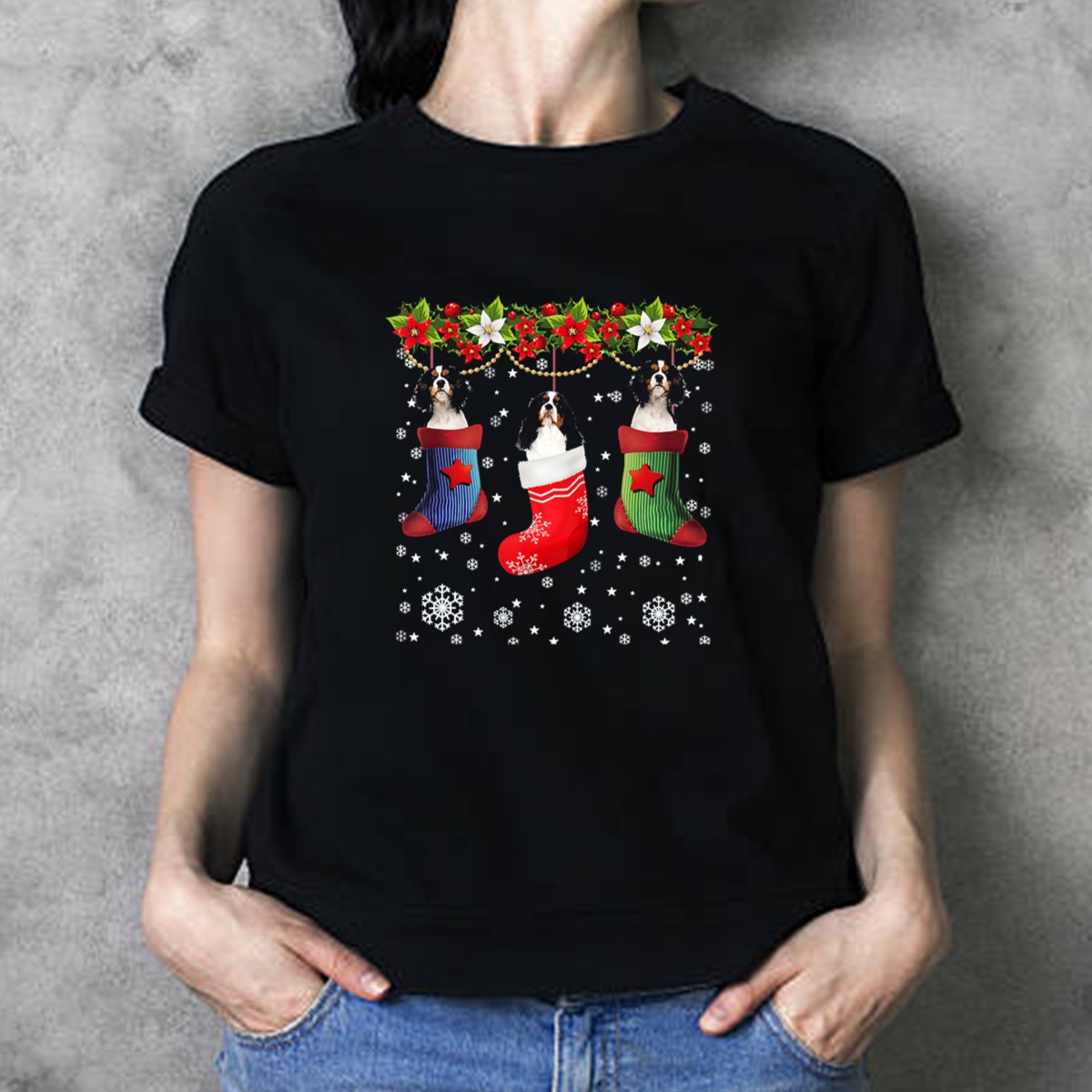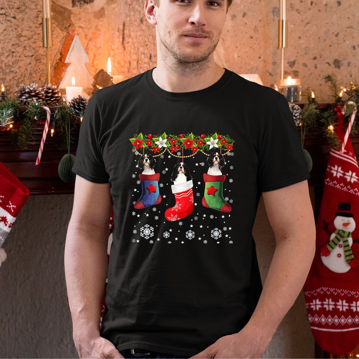 Celebrate the festive season with our “Three Cavalier Dogs In Christmas Stocking Santa Socks” T-Shirt! Perfect for dog lovers and holiday enthusiasts alike, this fan-made design brings a touch of joy and whimsy to any casual outfit. Whether you’re heading to a themed event, enjoying a cozy day at home, or gathering with friends, this shirt adds a playful spirit to your wardrobe. Made with care in the USA, it’s not just a shirt—it’s a celebration of your love for Cavaliers during the most wonderful time of the year!