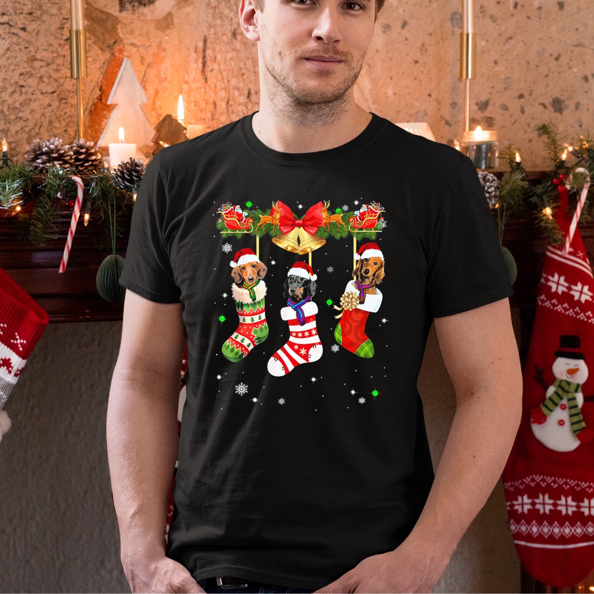 Celebrate the festive season with our charming “Three Dachshunds In Christmas Stockings With Santa Sleigh And Bells” T-shirt! Perfect for dog lovers and holiday enthusiasts alike, this playful design captures the joy of Christmas in a delightful way. Whether you’re attending a themed party, gathering with family, or just enjoying a casual day out, this shirt adds a whimsical touch to your wardrobe. Made in the USA, this fan-made design is not just a shirt; it’s a celebration of your love for dachshunds and the holiday spirit!