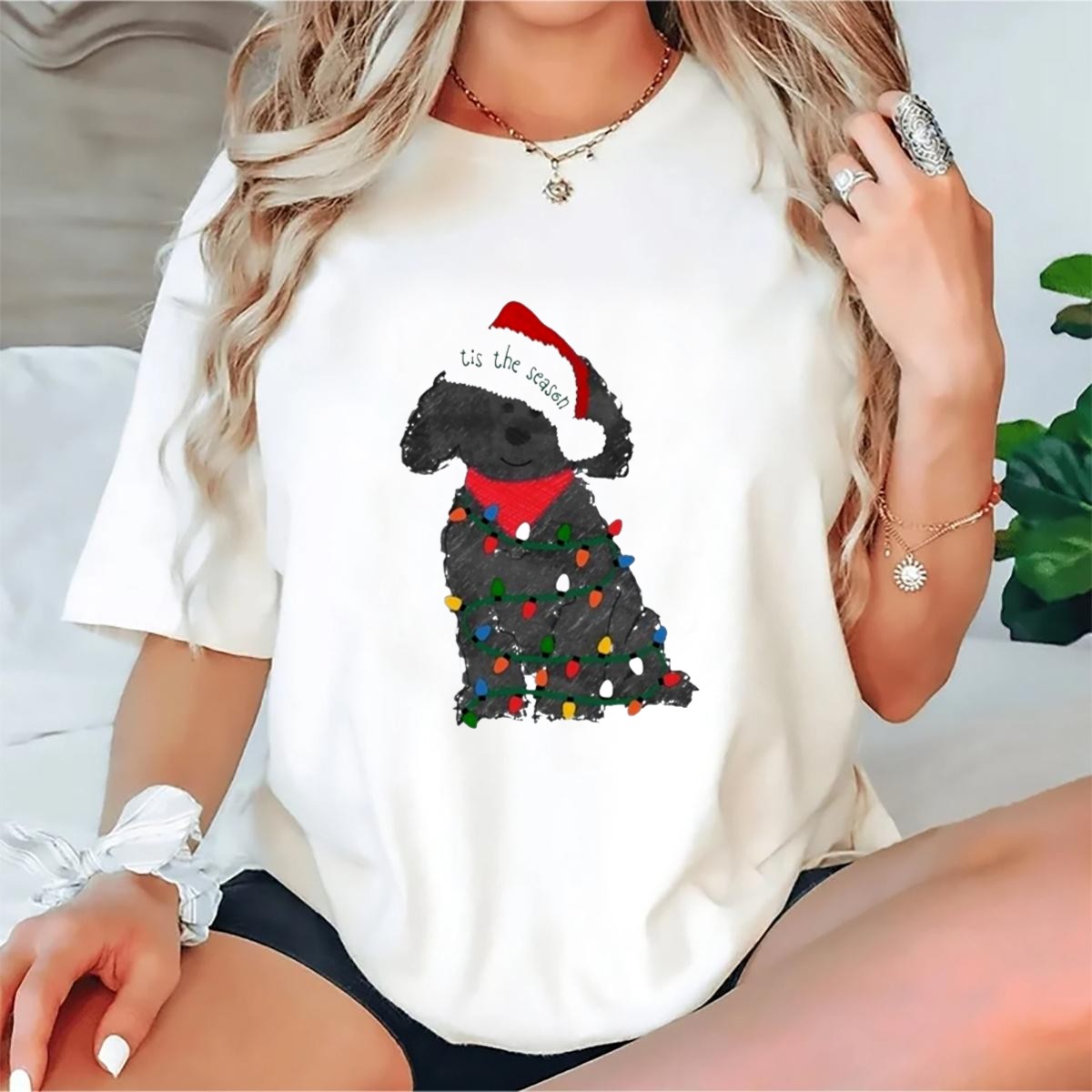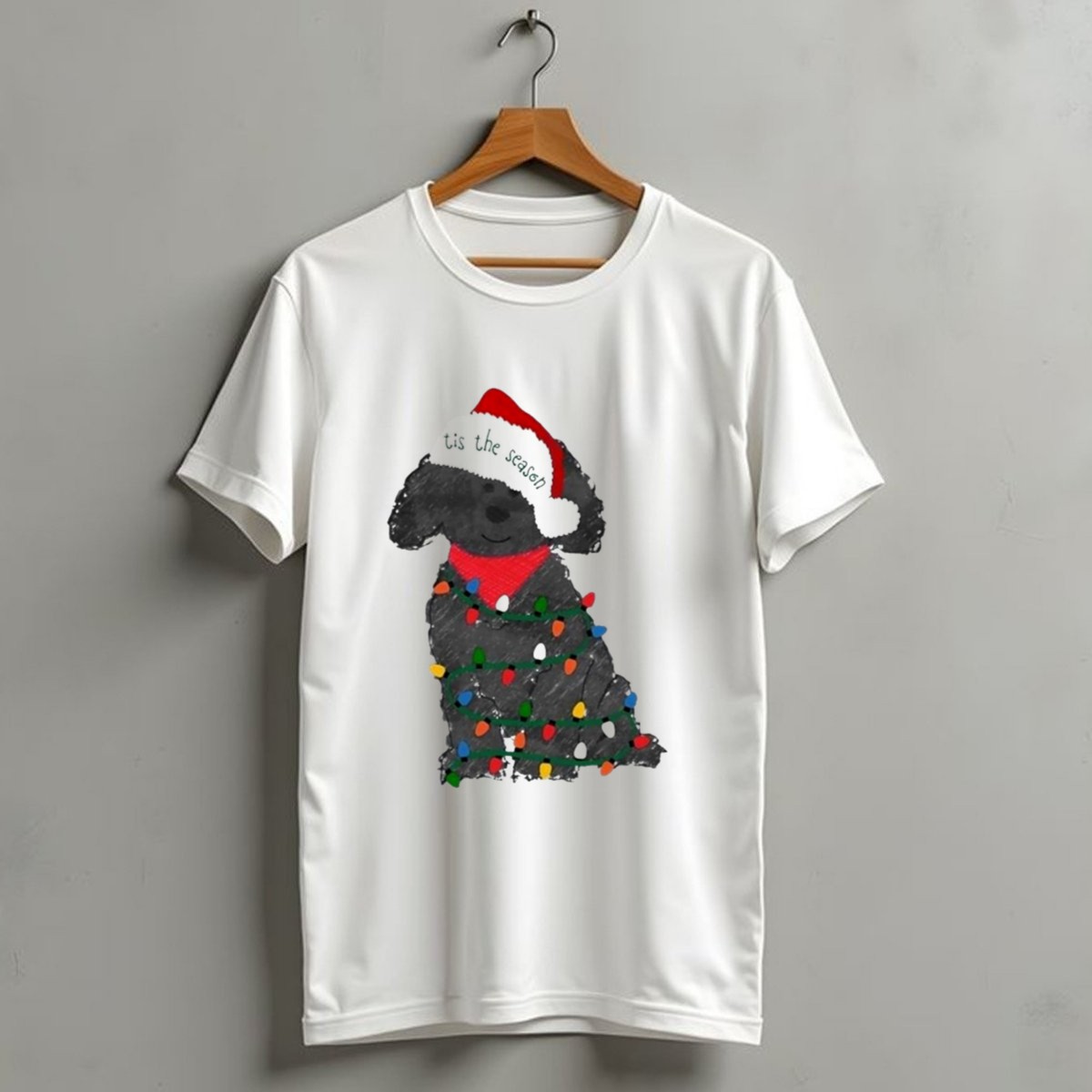 Celebrate the joy of the holiday season with our “Tis The Season Labradoodle Wrapped In Christmas Lights And Santa Hat” T-shirt! Perfect for dog lovers and festive fun, this playful design showcases your love for Labradoodles while embracing the holiday spirit. Ideal for casual outings, themed events, or simply spreading cheer during daily wear, this shirt is a must-have addition to your wardrobe for all-seasons festivities.