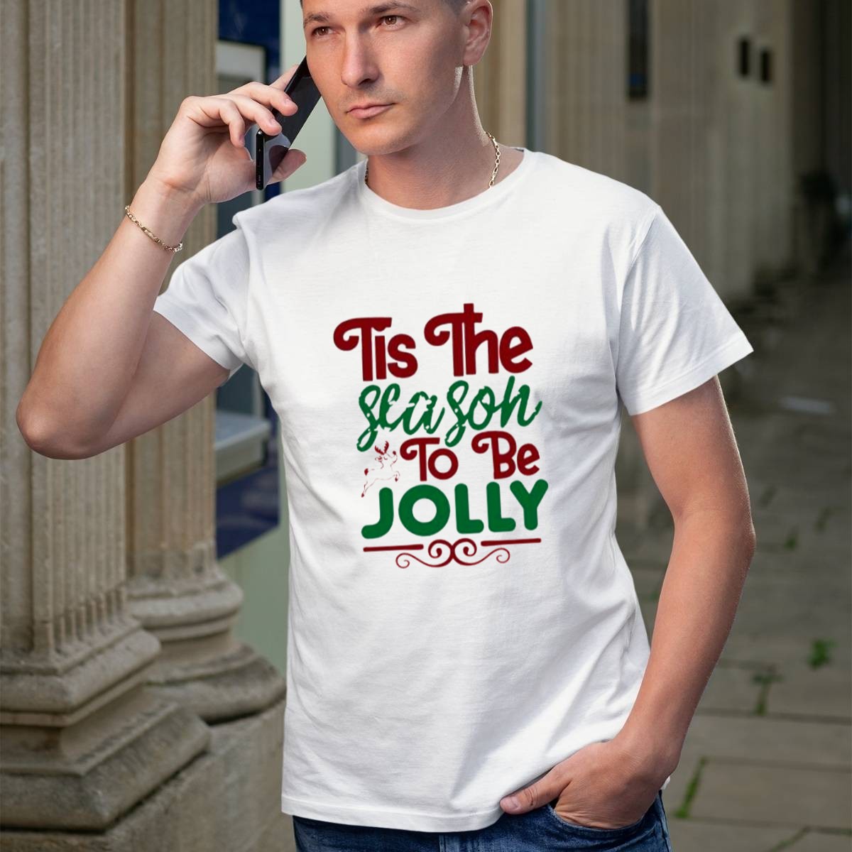 Embrace the holiday spirit with our “Tis The Season To Be Jolly” Christmas T-shirt featuring a charming reindeer accent. Perfect for festive gatherings, themed events, or simply spreading cheer throughout the season, this fan-made design is ideal for anyone looking to add a touch of joy to their wardrobe. Crafted with comfort in mind, this T-shirt is not only stylish but also a delightful way to celebrate the most wonderful time of the year!