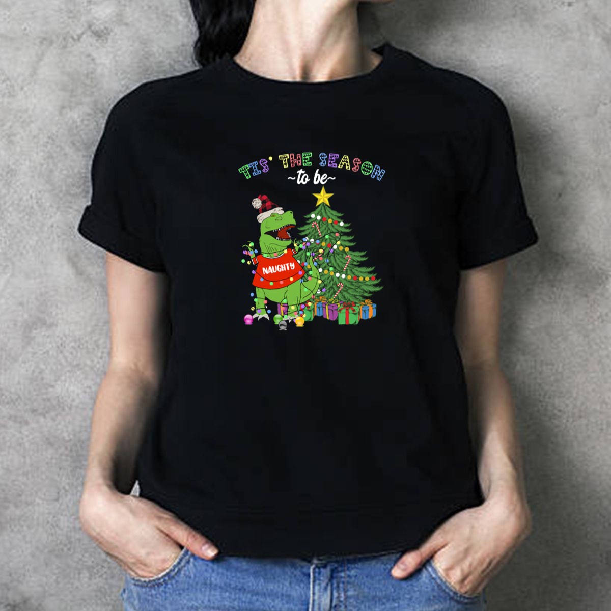 Get ready to celebrate the holidays with a playful twist! Our “Tis The Season To Be Naughty Dinosaur Christmas Tree Lights T-Shirt” is perfect for dinosaur lovers and those who enjoy a fun, festive vibe. Ideal for casual wear, themed events, or just spreading cheer during the holiday season, this unique fan-made design is printed in the USA, making it a must-have for your all-season wardrobe.