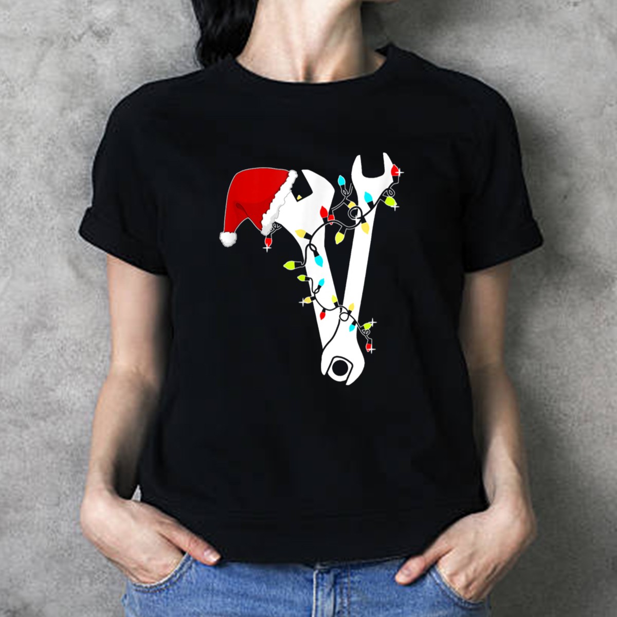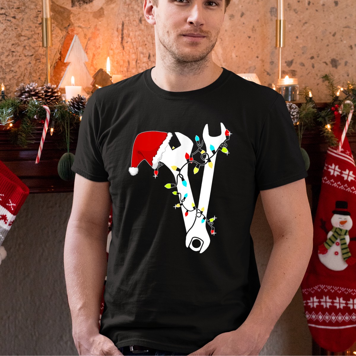 Tool Wrench Technician Mechanic Engineer Christmas Lights Santa Hat T-Shirt