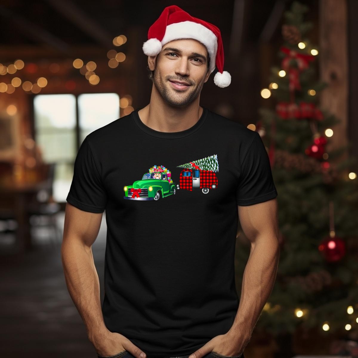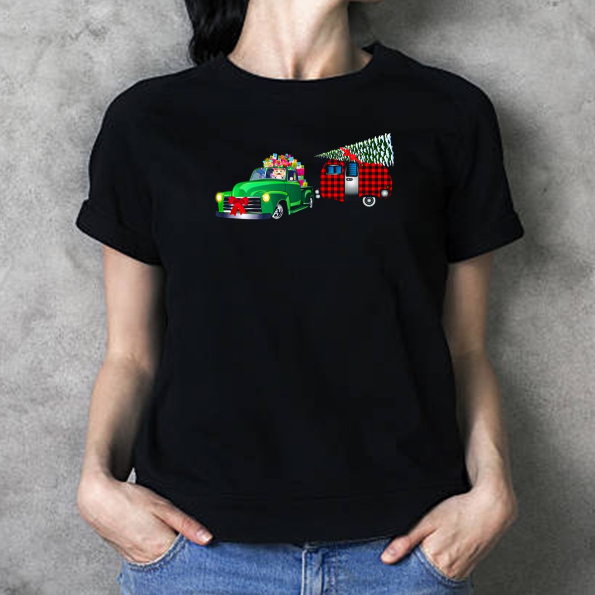Toy Soldier Driving Classic Vintage Holiday Truck With Christmas Tree Trailer T-Shirt