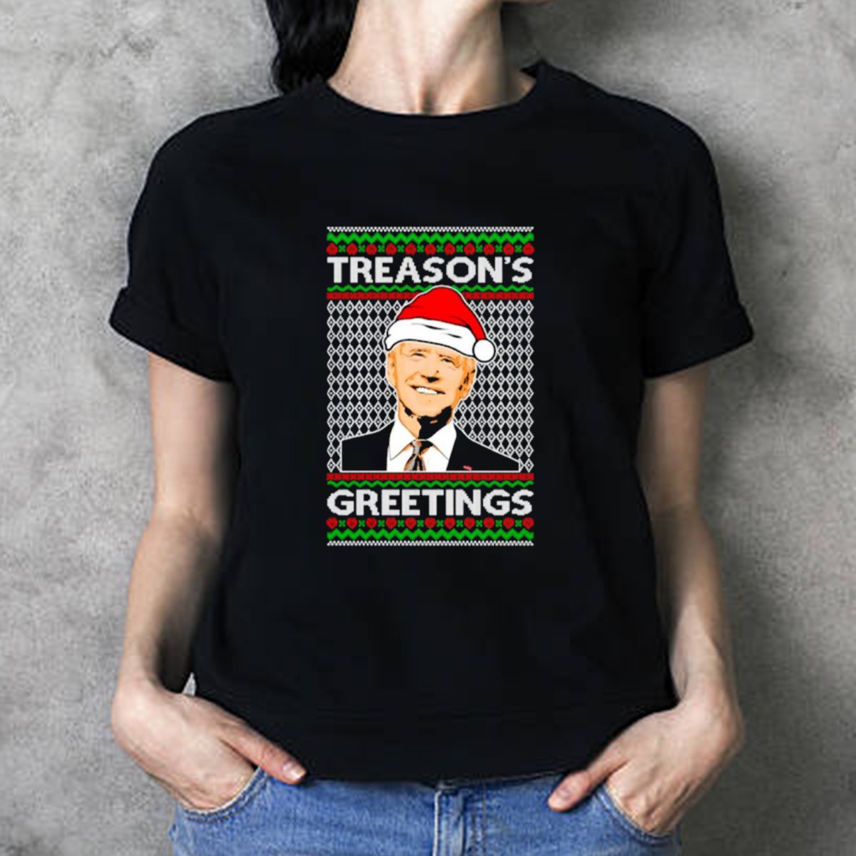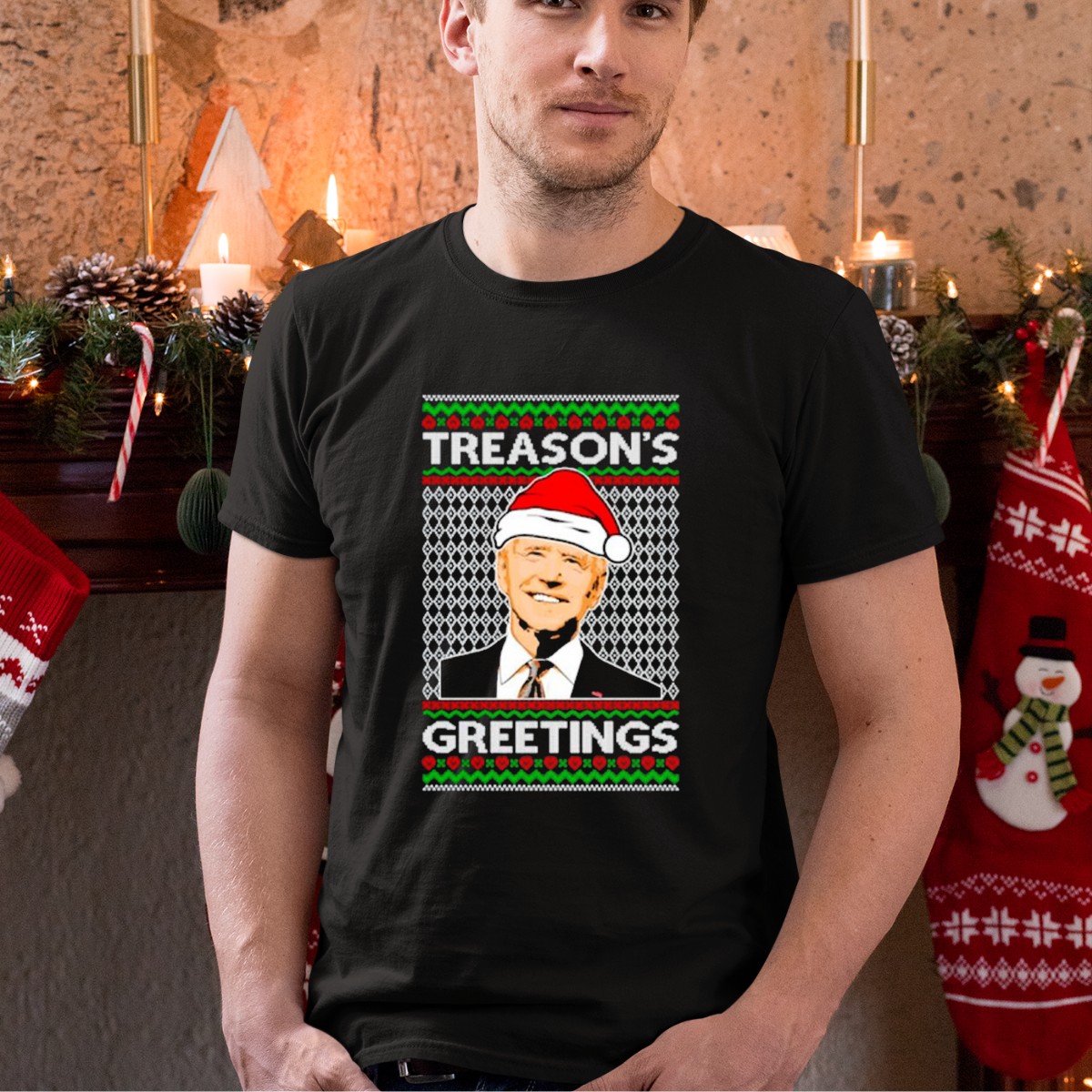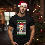 Get ready to spread holiday cheer and a touch of political humor with our Treason’s Greetings Santa Hat Joe Biden Ugly Christmas T-Shirt! Perfect for festive gatherings, themed events, or just a casual day out, this shirt features a unique fan-made design that showcases your fun-loving spirit and love for the season. Made for everyone who wants to make a statement while staying comfortable, this T-shirt is sure to be a conversation starter at any holiday party!