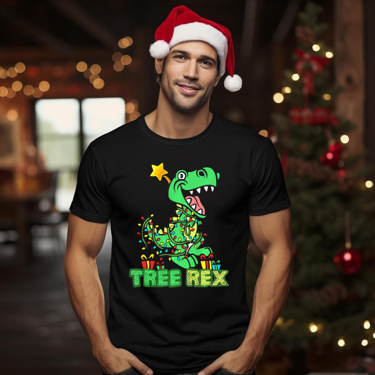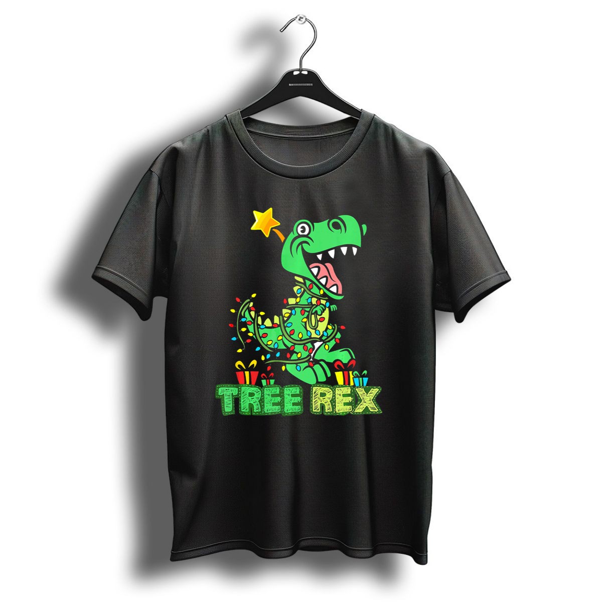 Unleash your holiday spirit with our Tree Rex Dinosaur Wrapped In Christmas Lights T-Shirt! Perfect for dinosaur enthusiasts and festive fun, this fan-made design is sure to be a hit at themed events, casual gatherings, or simply as a daily wear piece during the joyous season. Printed in the USA, this shirt combines whimsy and comfort, making it a unique addition to your wardrobe that celebrates both Christmas and your love for dinosaurs.