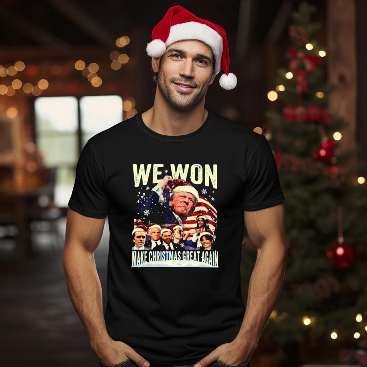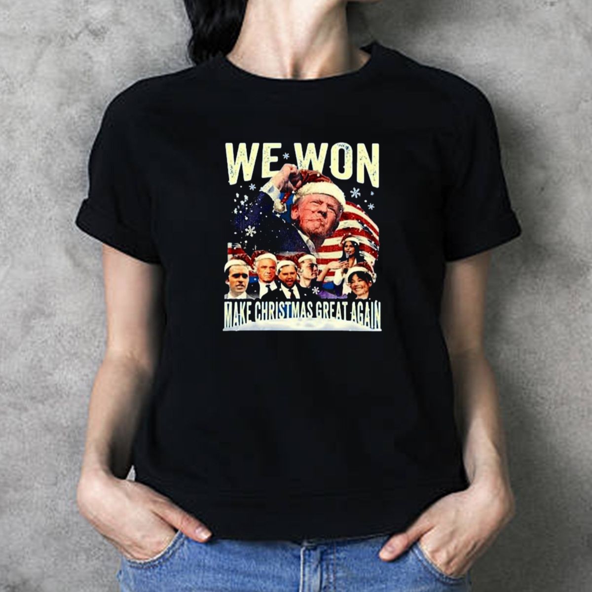 Get ready to spread some holiday cheer and show your support with our Trump 2024 We Won Make Christmas Great Again Santa Hat Flag Snowflakes T-Shirt! This festive tee is perfect for fans of all ages who want to celebrate the season while making a bold statement. Whether you’re attending a holiday party, a casual gathering with friends, or just enjoying daily wear, this shirt is designed for comfort and style, making it a standout piece in your wardrobe.