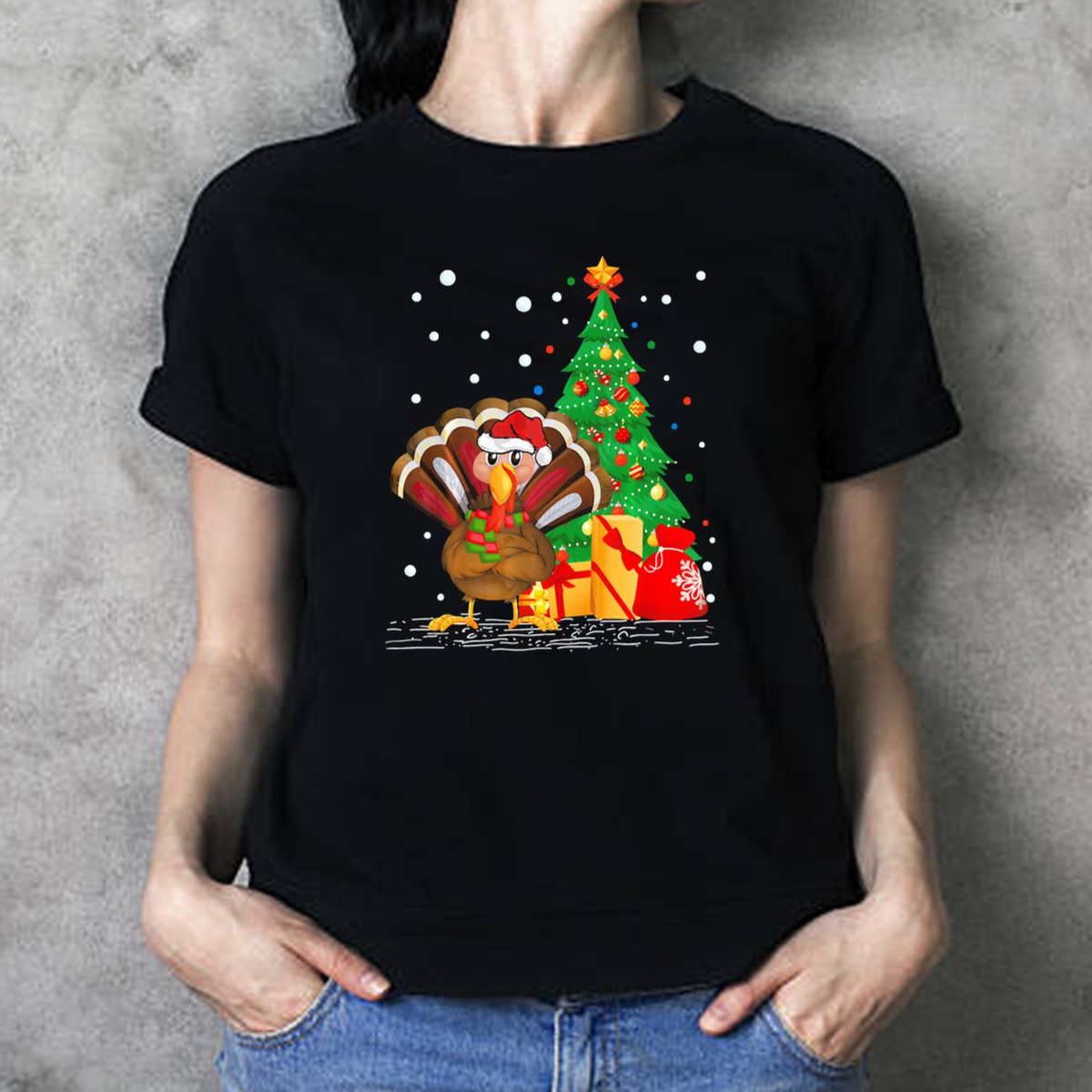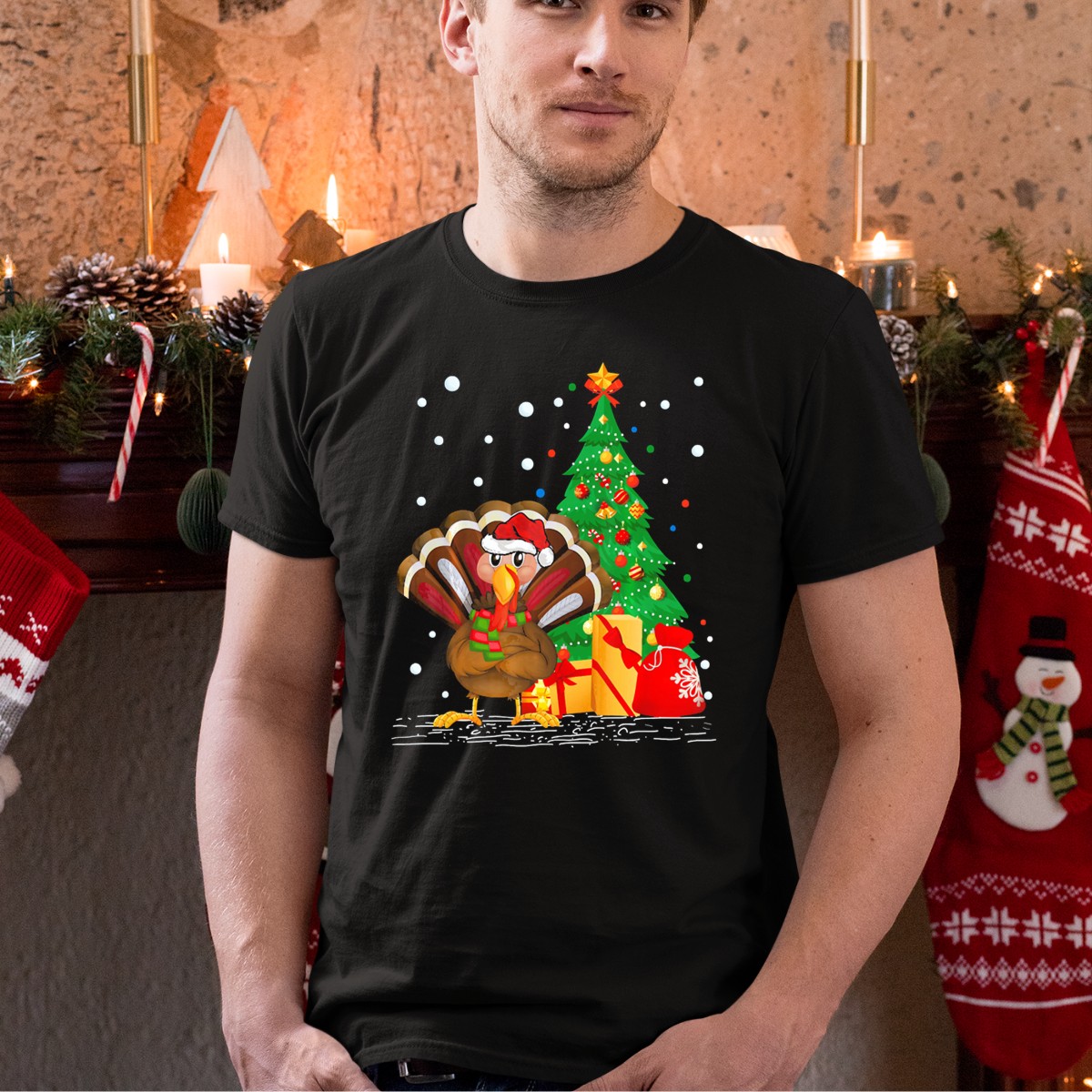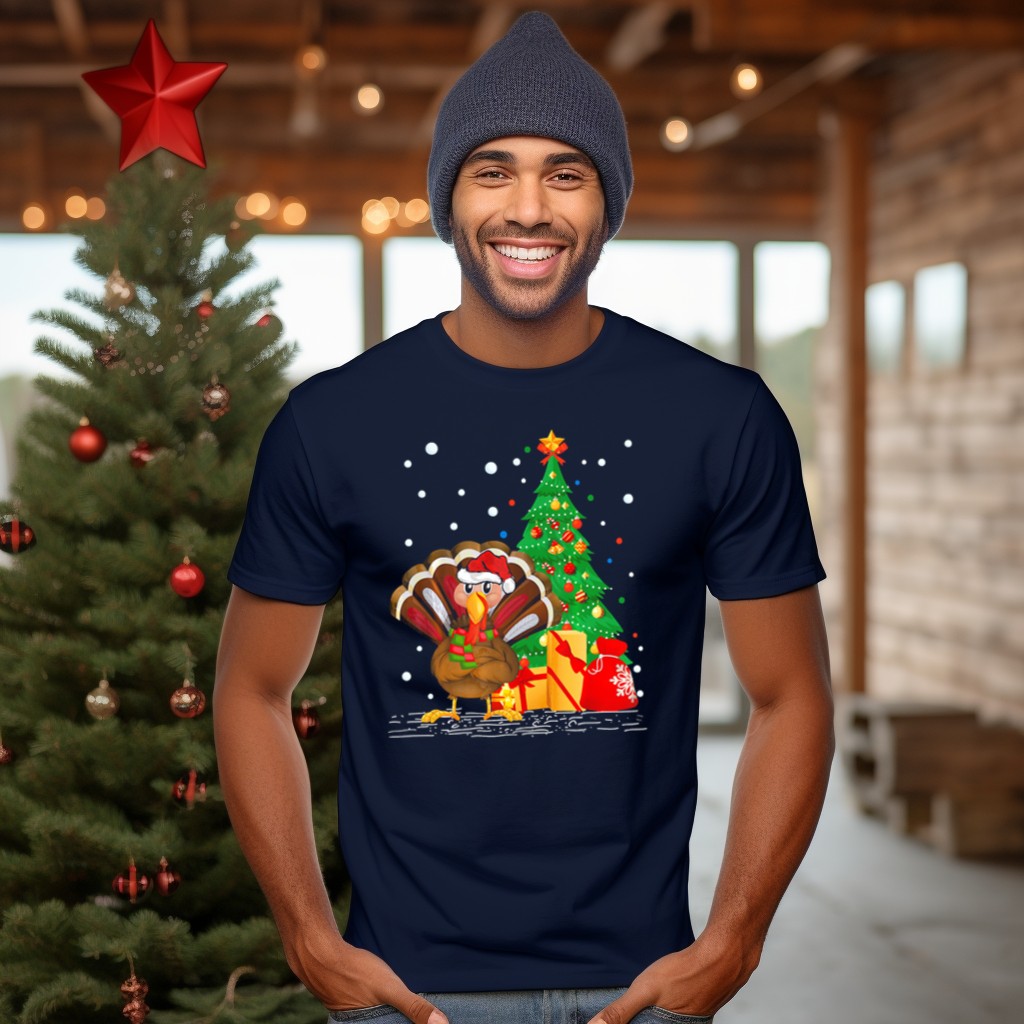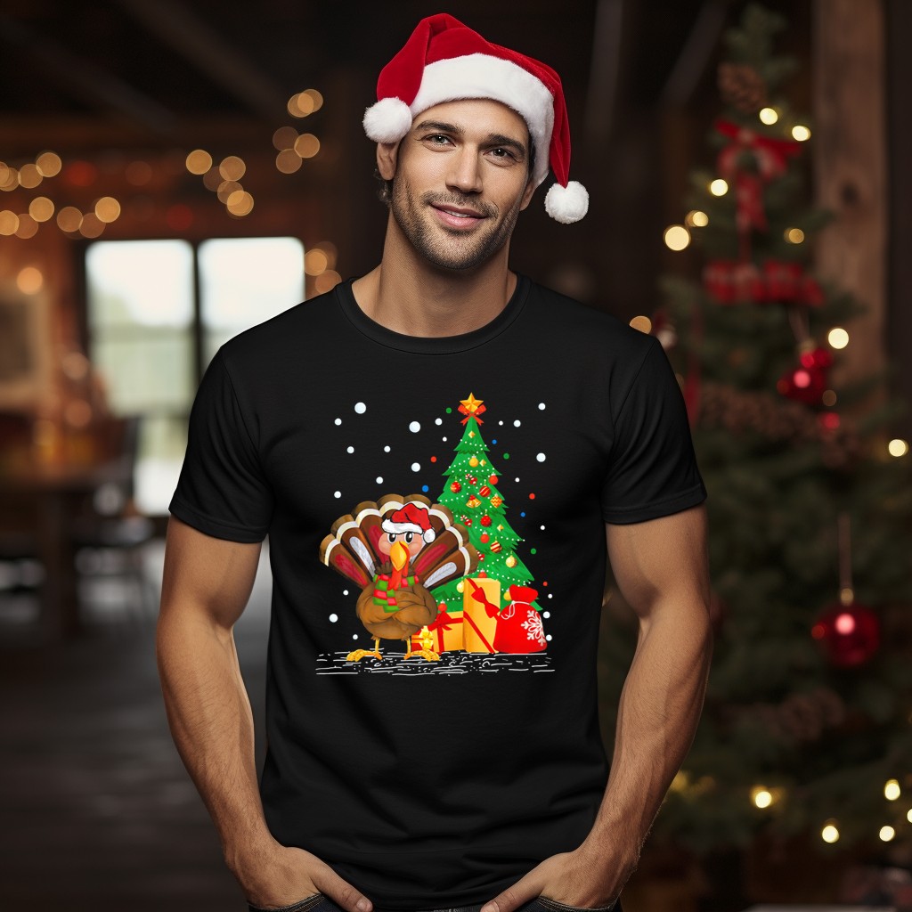 Celebrate the holiday season with our delightful Turkey In Santa Hat With Christmas Tree And Gifts T-Shirt! This fun and festive design is perfect for anyone looking to add a touch of humor to their casual wear. Ideal for themed events, family gatherings, or simply spreading cheer during the holiday season, this shirt combines comfort and style, making it a must-have addition to your wardrobe. Plus, it’s fan-made and printed right here in the USA, ensuring a unique piece that stands out!
