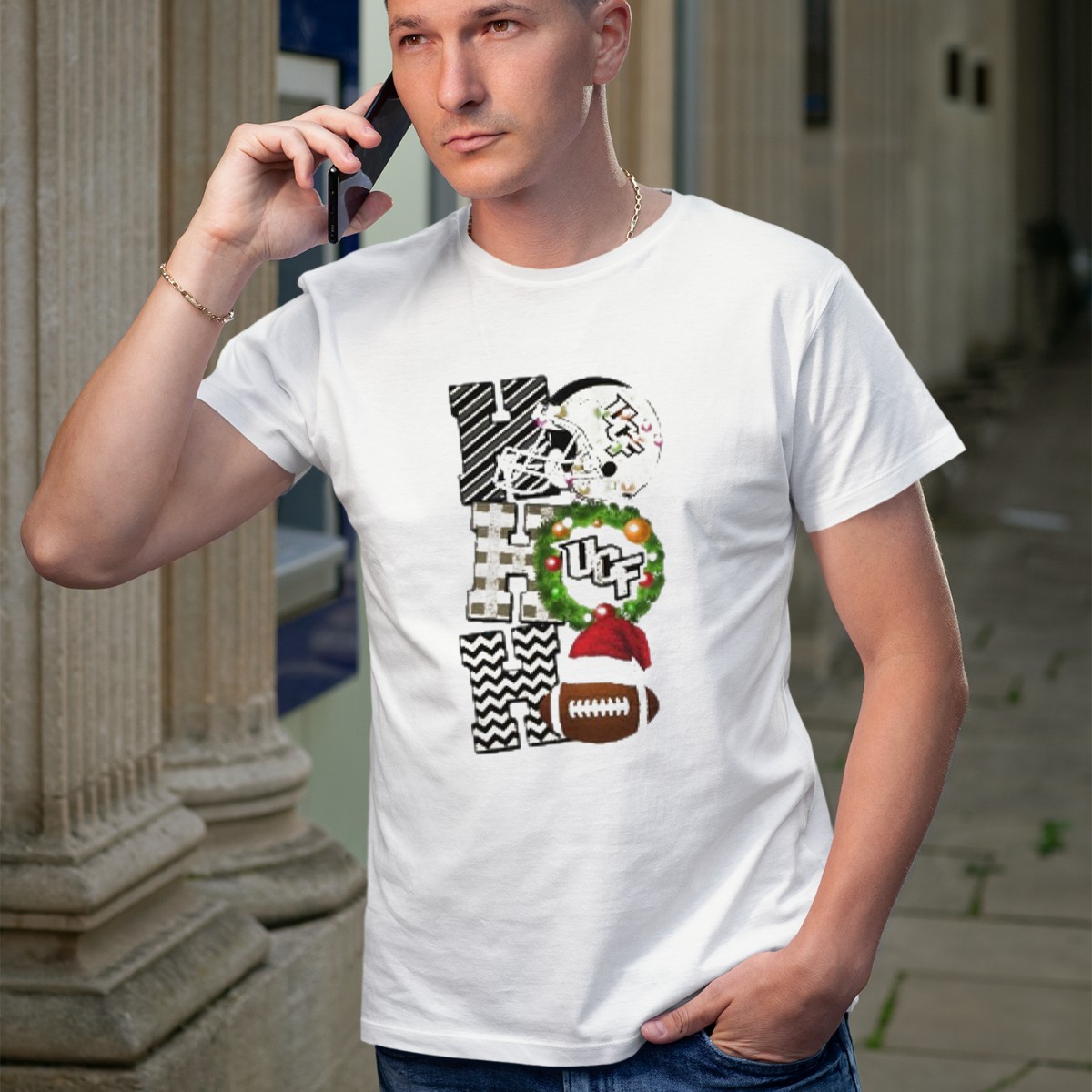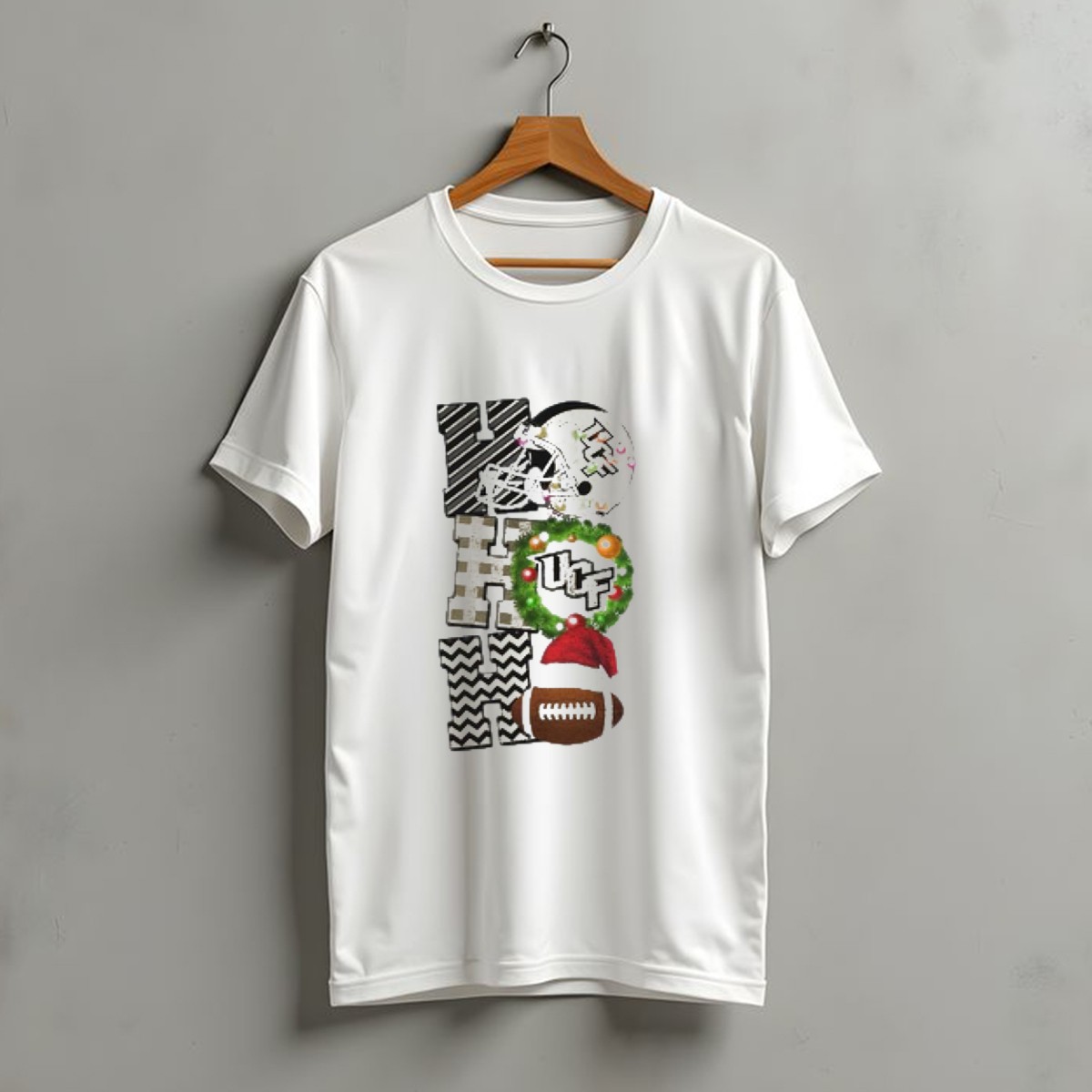 Ucf Knights Football Christmas Helmet Wreath Santa Ho Ho Ho Game Day T-Shirt