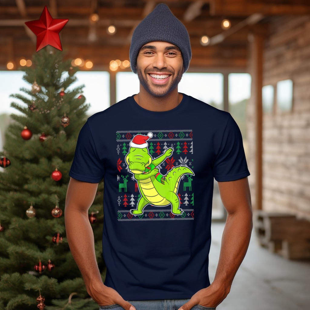 Be the first to review “Ugly Christmas Dabbing Alligator Santa Hat Festive T-Shirt”