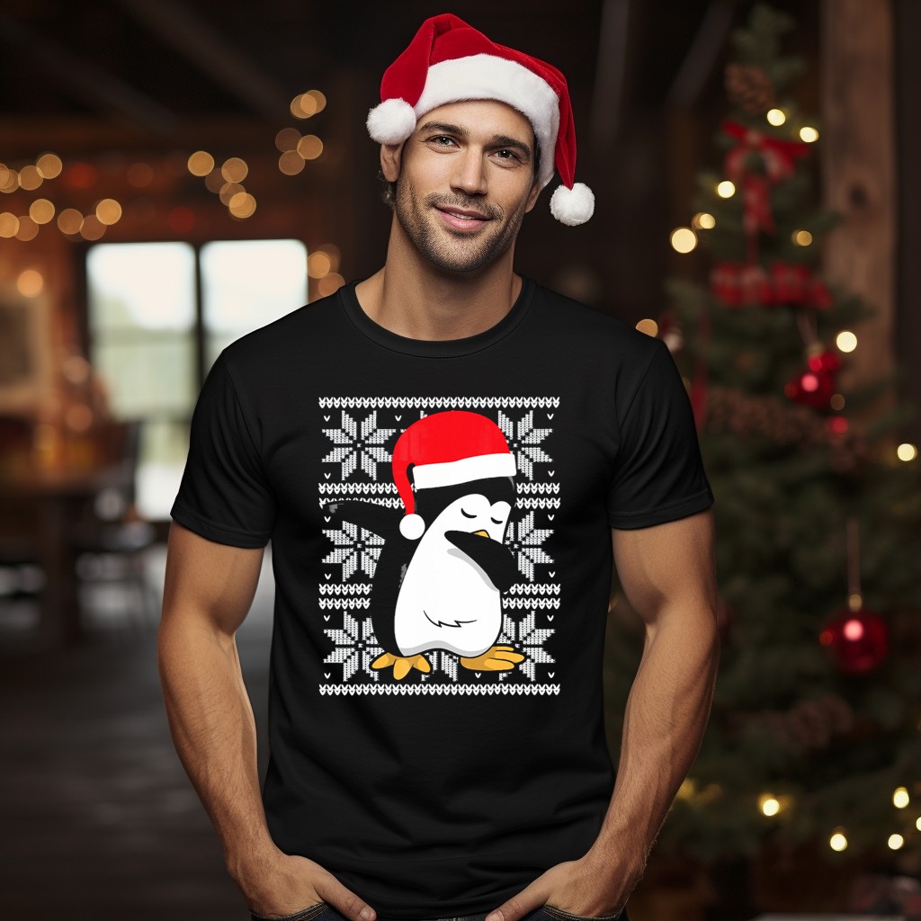 Get ready to spread some holiday cheer with our Ugly Christmas Dabbing Penguin T-Shirt! Perfect for festive gatherings, themed parties, or just lounging around during the holiday season, this shirt showcases a playful design of a dabbing penguin wearing a Santa hat, guaranteed to bring smiles to everyone around. Made for those who love to express their fun side while staying comfortable, this shirt is a must-have for any Christmas enthusiast!