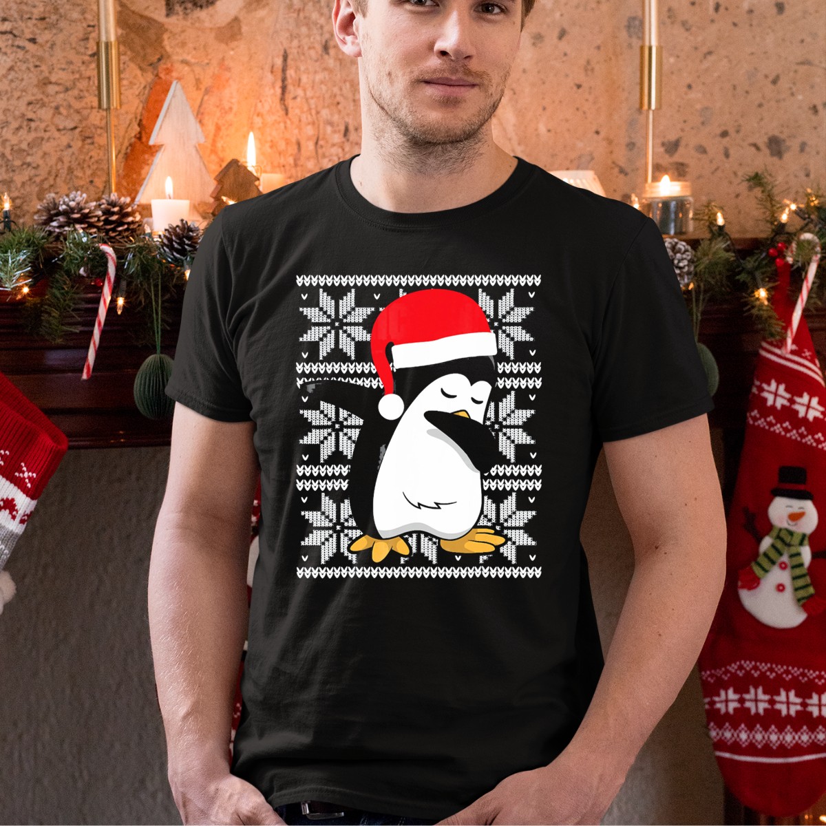 Be the first to review “Ugly Christmas Dabbing Penguin Santa Hat Snowflake T-Shirt”