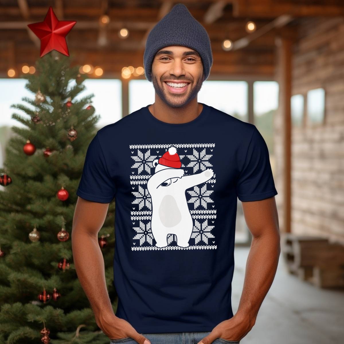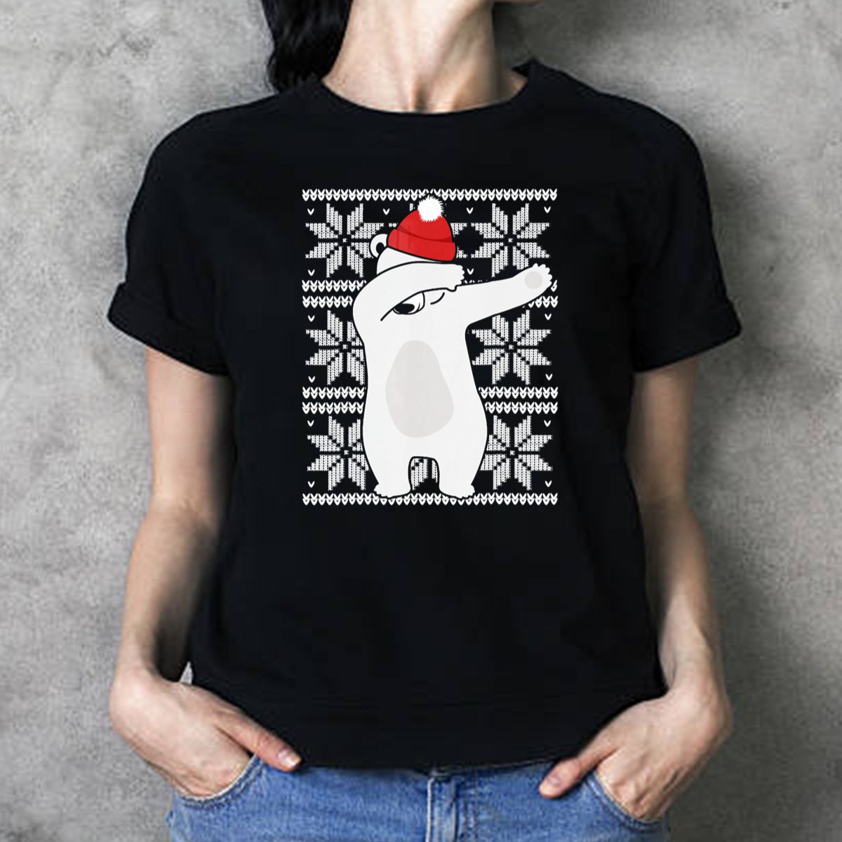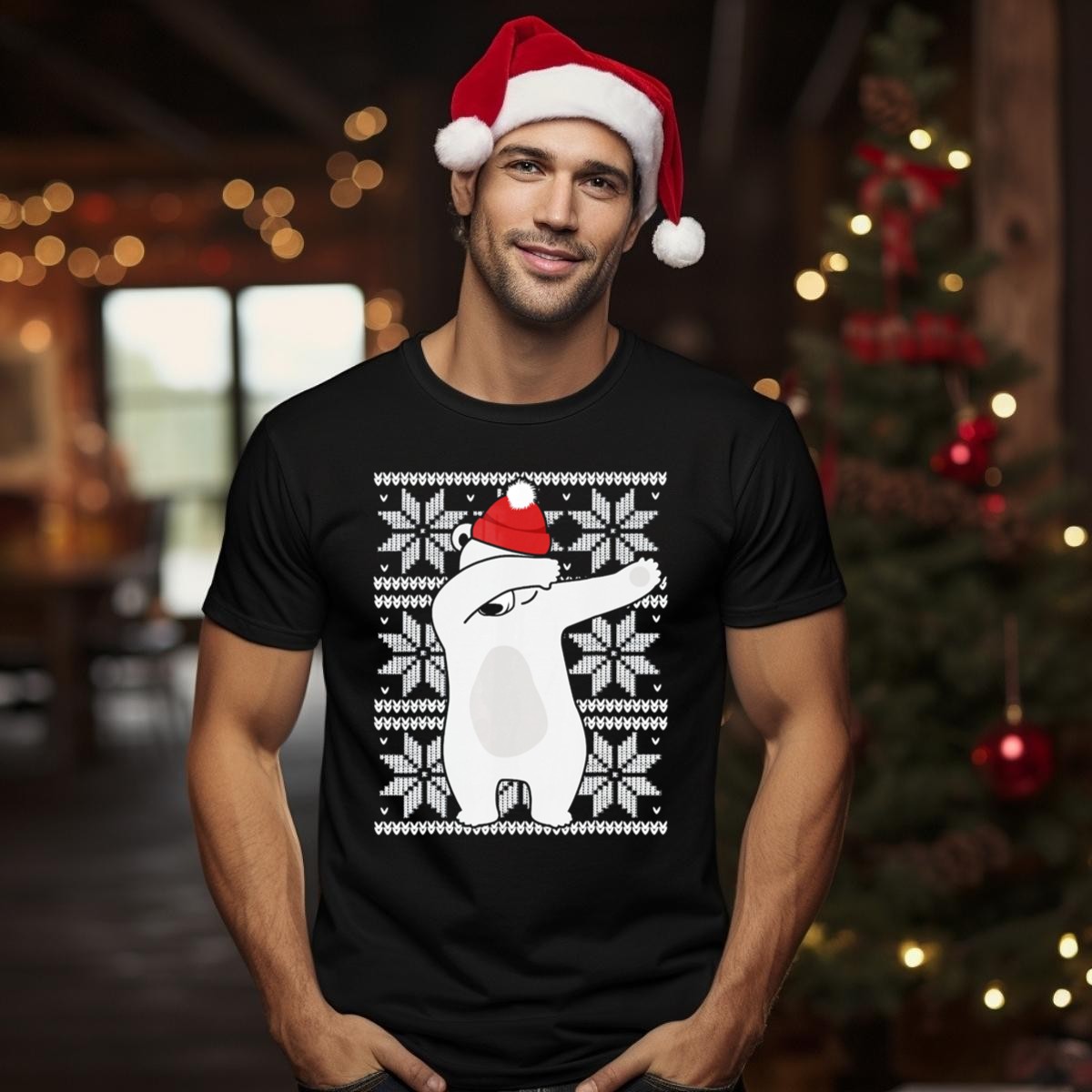 Get into the festive spirit with our Ugly Christmas Dabbing Polar Bear T-Shirt! Perfect for holiday gatherings, themed events, or just spreading cheer during the winter season, this shirt features a playful design that showcases a dabbing polar bear in a Santa hat surrounded by whimsical snowflakes. Ideal for anyone looking to add a touch of fun to their wardrobe, this fan-made shirt is printed right here in the USA, making it a unique addition to your casual wear collection.