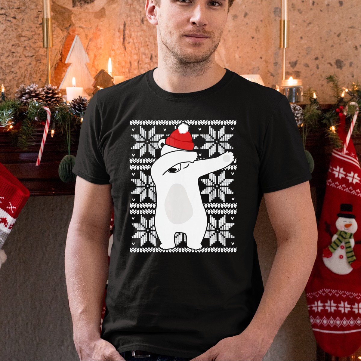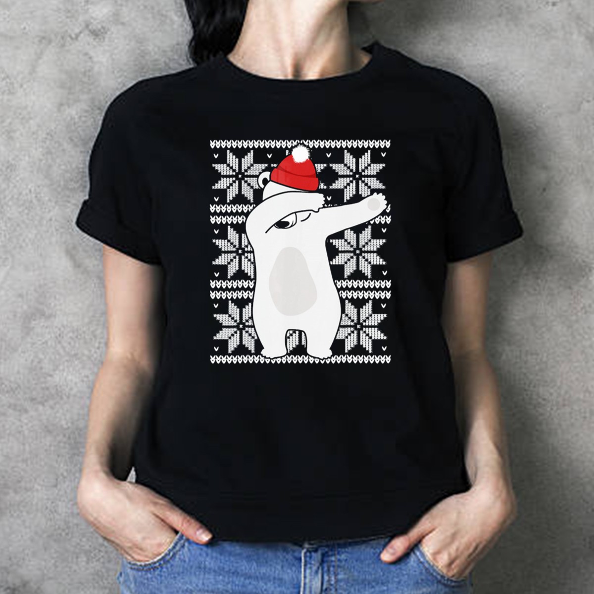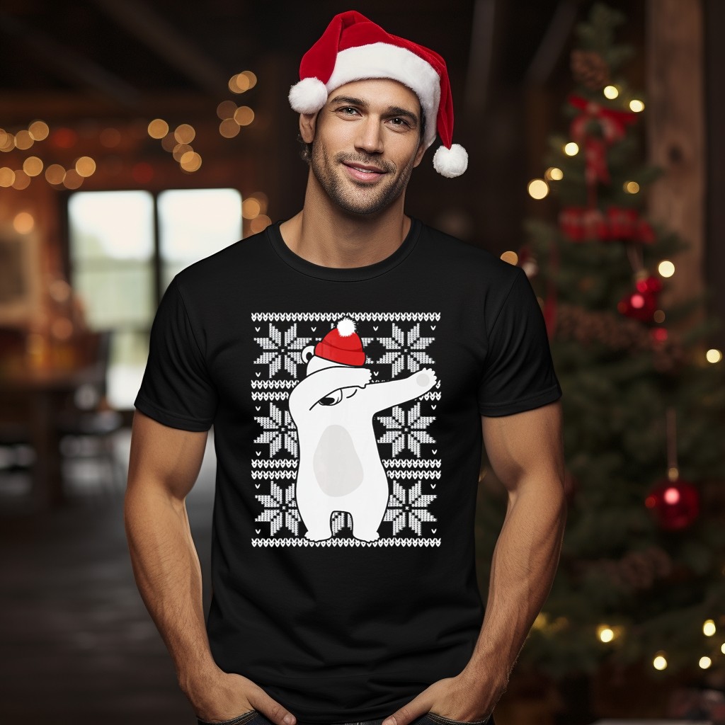 Get into the festive spirit with our Ugly Christmas Dabbing Polar Bear In Santa Hat T-Shirt! Perfect for holiday gatherings, themed events, or just spreading cheer in your daily wear, this fun and quirky design features a playful polar bear dabbing in a Santa hat surrounded by snowflakes. Made for those who love to celebrate the season with a touch of humor, this shirt is sure to be a conversation starter at any Christmas party!