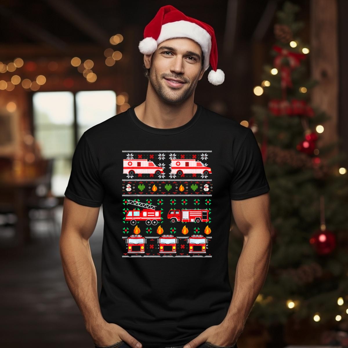Get ready to spread some holiday cheer with our Ugly Christmas Firefighter Paramedic Ambulance Fire Truck Festive T-Shirt! Perfect for those who proudly serve in emergency services or simply love a good festive laugh, this shirt combines comfort and holiday spirit. Designed for casual wear, themed events, or just a cozy day at home, it’s a fantastic way to showcase your passion while celebrating the season with style. Made in the USA, this fan-made design is sure to be a conversation starter at any holiday gathering!