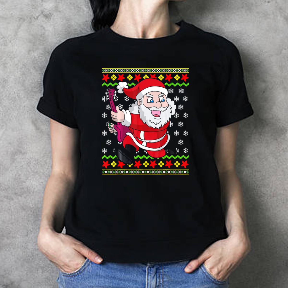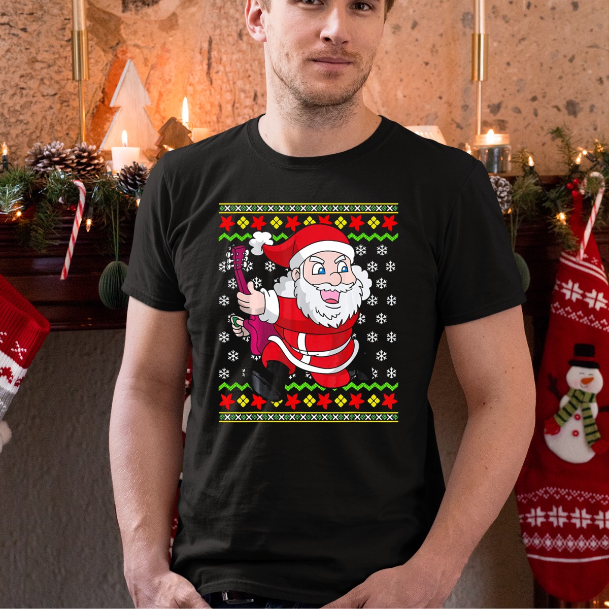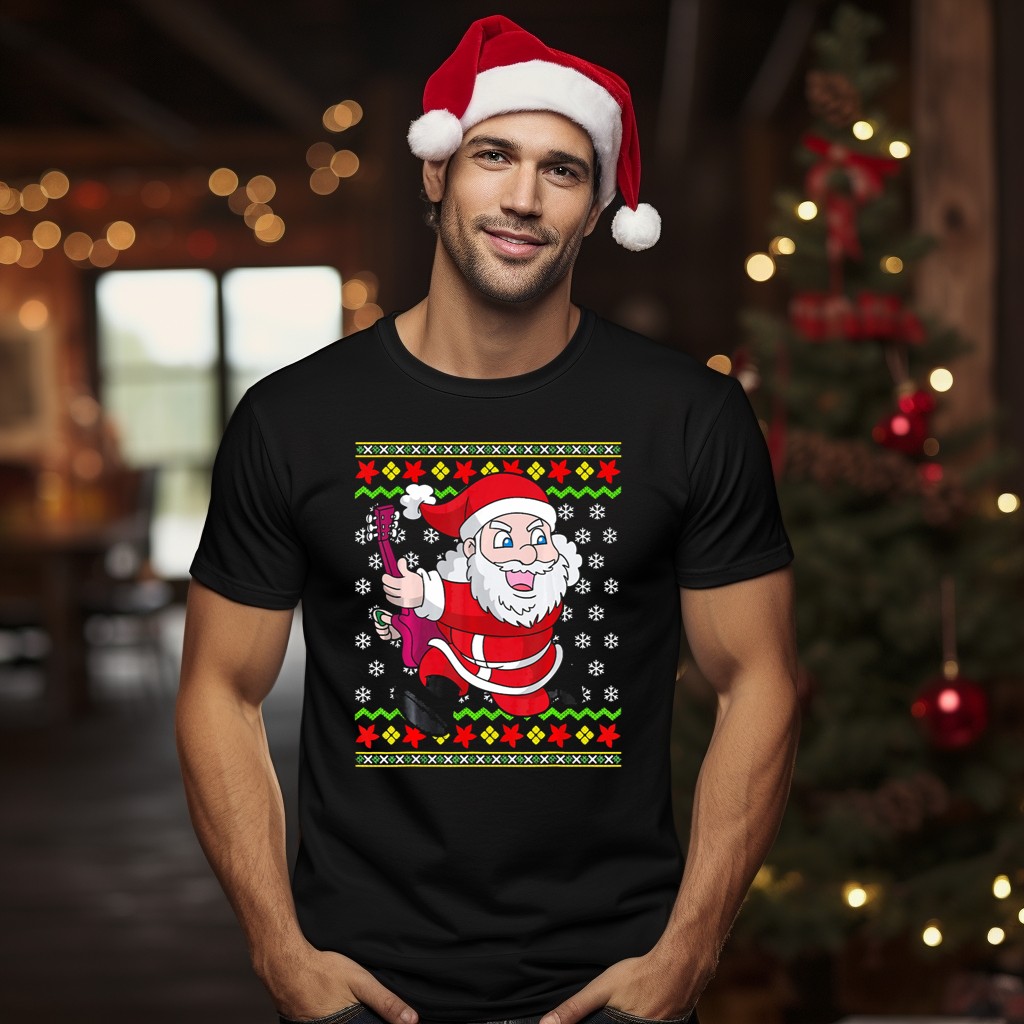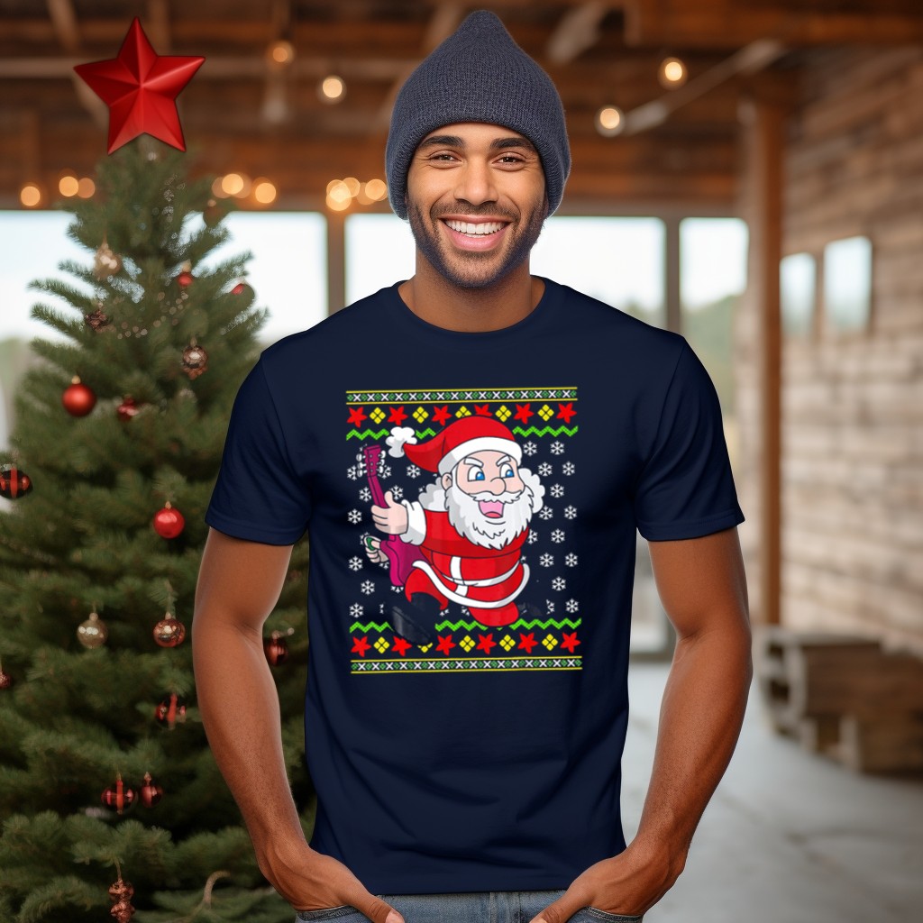 Be the first to review “Ugly Christmas Santa Playing Guitar Festive T-Shirt”