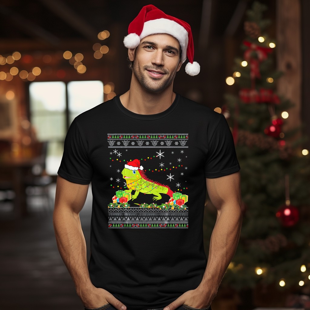 Get ready to spread holiday cheer with our Ugly Christmas Sweater Iguana Lights Festive Santa Hat T-Shirt! Perfect for those who love to celebrate the season with a twist, this fun and quirky tee is ideal for casual gatherings, themed events, or just lounging around during the holidays. Made for iguana lovers and Christmas enthusiasts alike, this shirt is not only a great conversation starter but also a cozy addition to your festive wardrobe, printed right here in the USA.