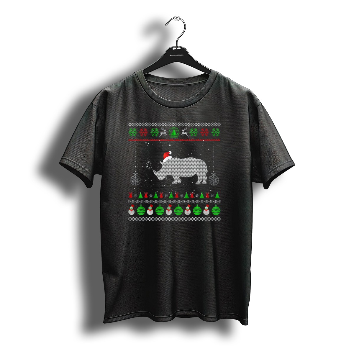 Get into the holiday spirit with our Ugly Christmas Sweater Santa Hat Rhino Pattern T-Shirt! Perfect for those who love to stand out during the festive season, this fan-made design adds a playful twist to your casual wardrobe. Ideal for themed events, holiday parties, or simply lounging around, this shirt is a fun way to express your love for unique holiday apparel. With its soft and breathable fabric, you’ll stay comfortable while making a statement!