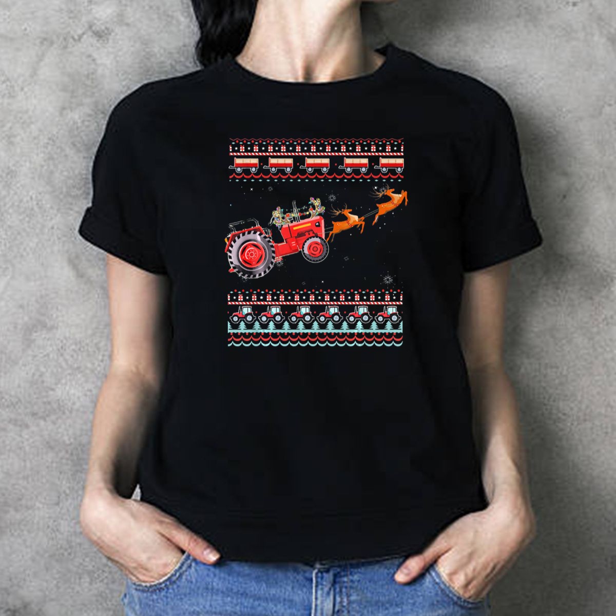 Get ready to spread some holiday cheer with our Ugly Christmas Tractor Sleigh T-Shirt! Perfect for tractor enthusiasts and festive spirits alike, this fan-made design features a whimsical tractor sleigh pulled by reindeer amidst a flurry of snowflakes. Ideal for casual wear, themed events, or simply celebrating the season in style, this shirt is a fun addition to your wardrobe that will surely turn heads and spark conversations. Printed with care in the USA, it embodies the spirit of Christmas with a unique twist that sets you apart from the crowd.