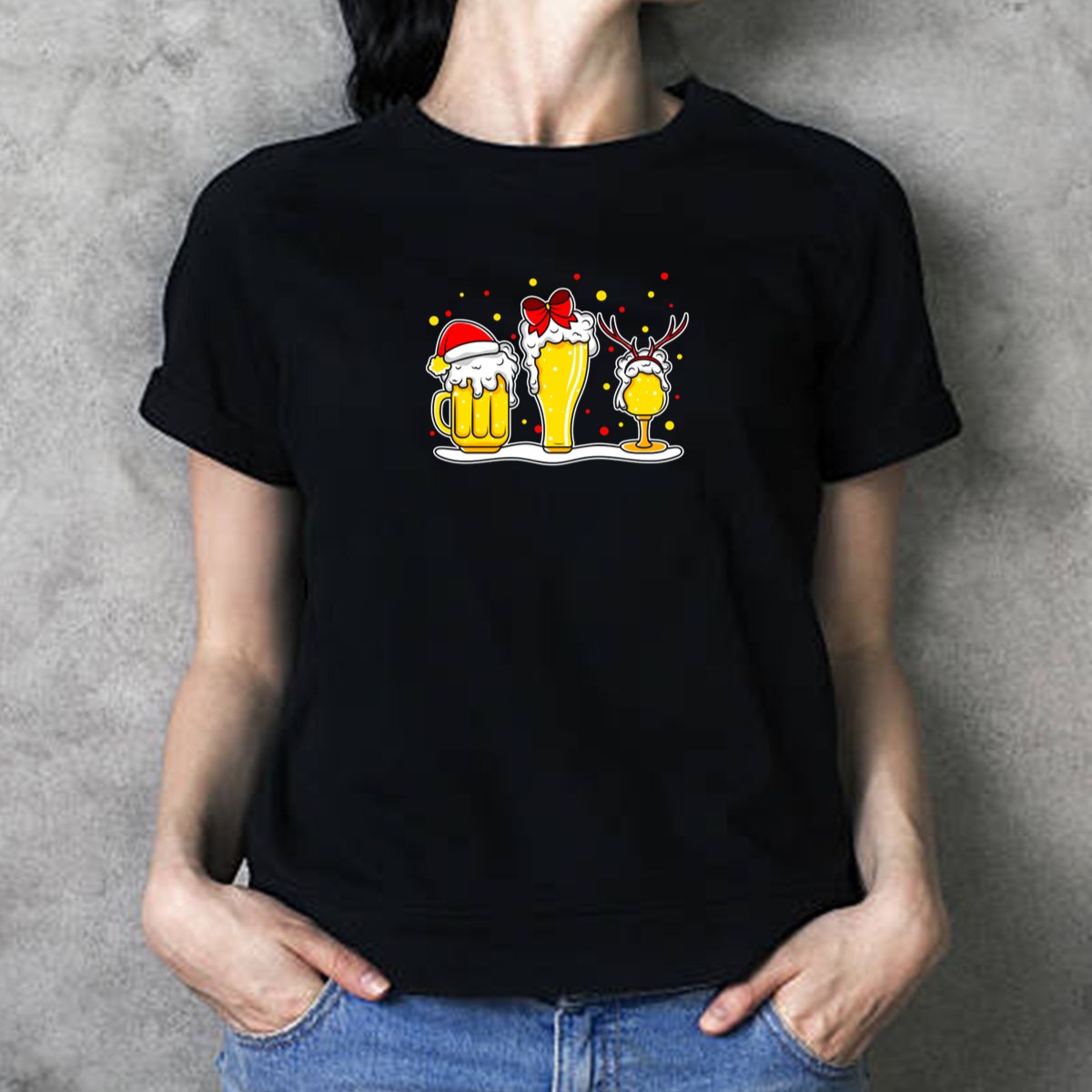 Ugly Christmasbier Wine Drinks Joy Santa Hat Reindeer Antlers Red Bow T Shirt