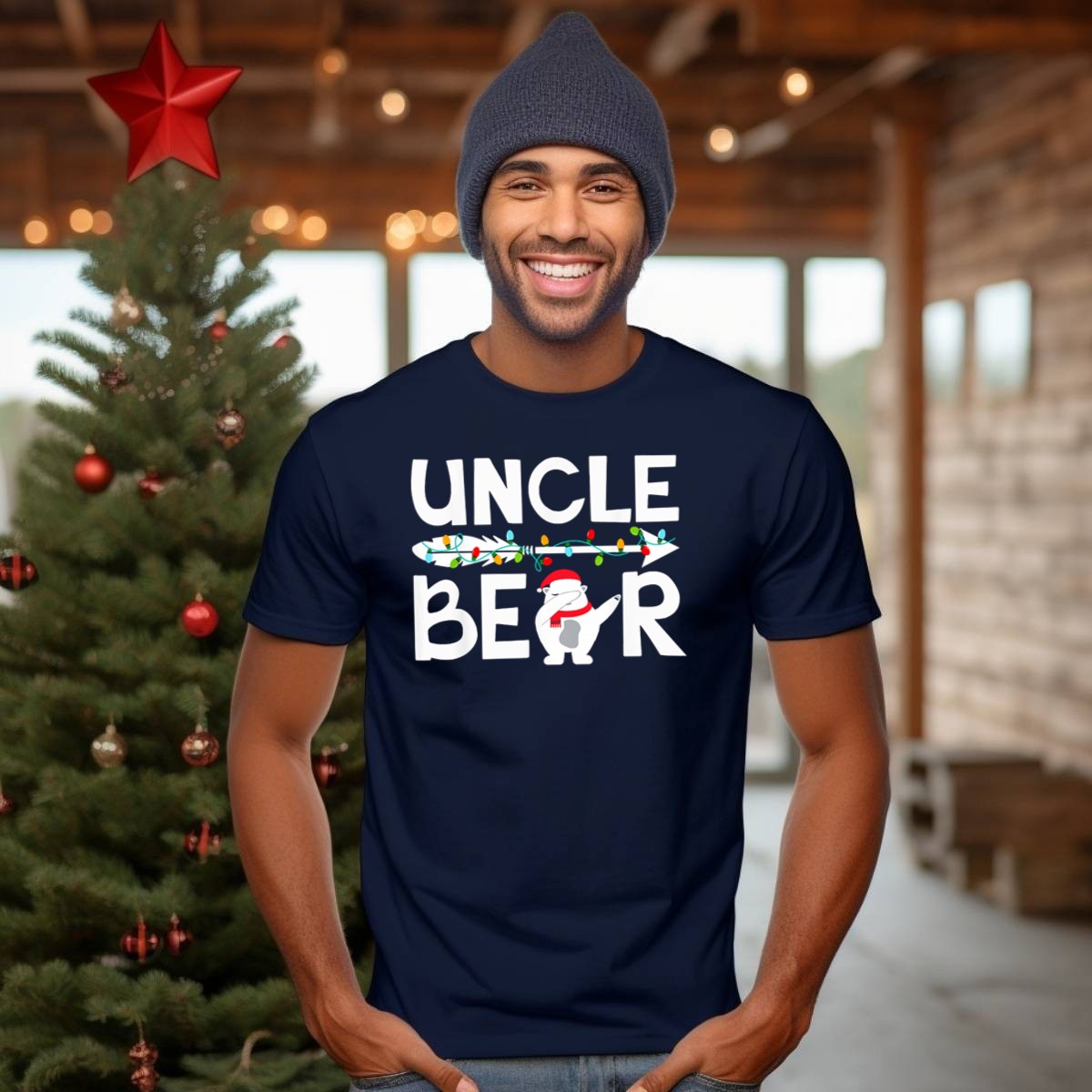 Get ready to spread some holiday cheer with our Uncle Bear Christmas Polar Bear T-Shirt! Perfect for family gatherings, festive parties, or a cozy day at home, this shirt features an adorable polar bear decked out in holiday lights and a jolly Santa hat. Made for those who love to celebrate the spirit of Christmas, this fan-made design is printed in the USA, making it a unique addition to your seasonal wardrobe.