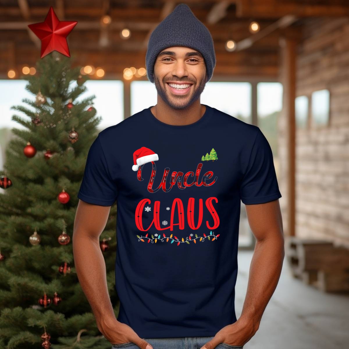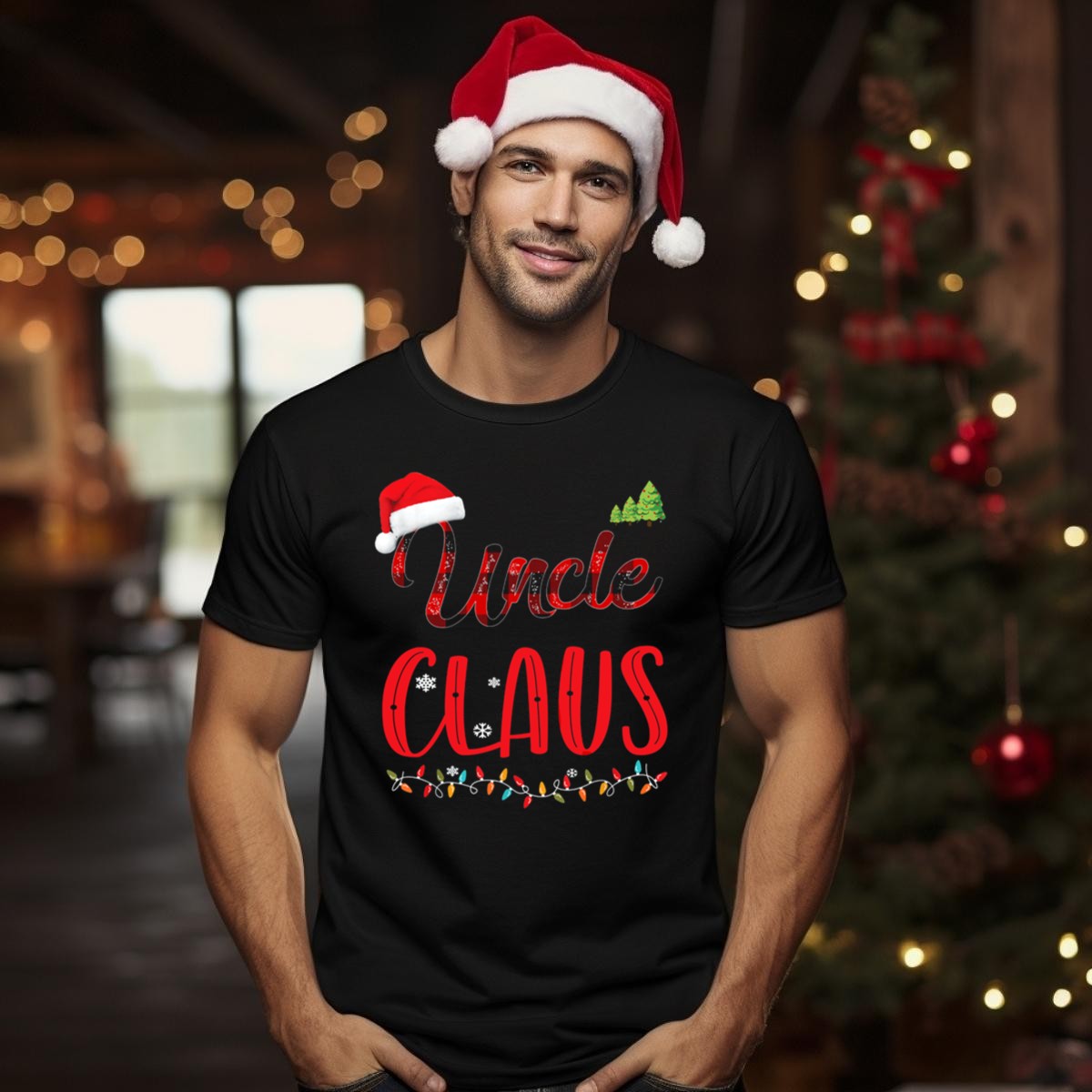 Celebrate the holiday spirit with our Uncle Claus Merry Christmas T-Shirt, featuring a whimsical design of Santa hats, twinkling lights, and snowflakes! Perfect for Christmas gatherings, themed events, or just spreading cheer during the festive season, this shirt brings joy and warmth to your wardrobe. Made for everyone, it’s an ideal gift for family and friends who love to embrace the magic of Christmas all year round.