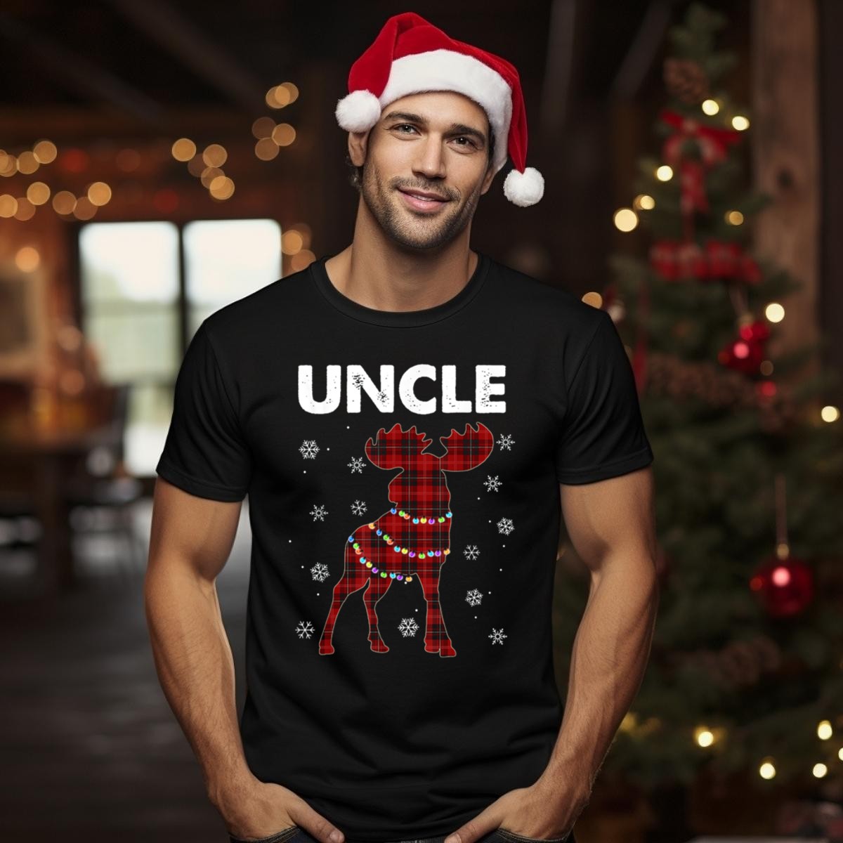 Embrace the festive spirit with our Uncle Red Plaid Moose T-Shirt, designed for those who love to celebrate the joy of the season in style. Perfect for family gatherings, holiday parties, or cozy evenings by the fire, this shirt features a whimsical graphic that combines the charm of a moose in classic red plaid with delightful snowflakes and twinkling Christmas lights. Crafted for comfort and durability, it’s a unique addition to your casual wear collection that showcases your holiday cheer.