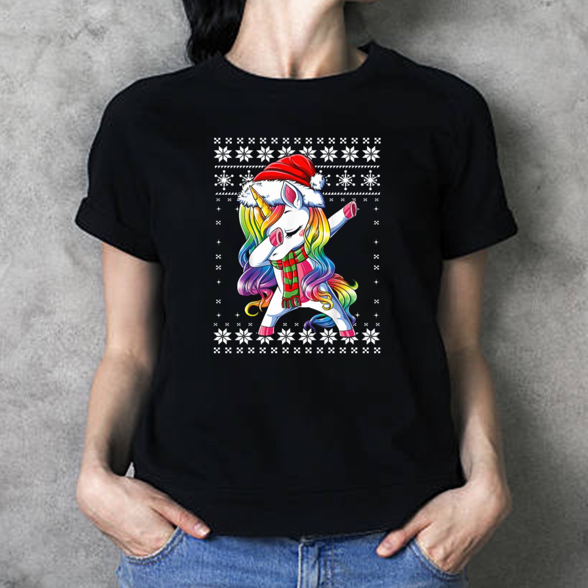 Celebrate the holiday spirit with our whimsical Unicorn Dabbing Santa Christmas T-Shirt! Perfect for unicorn lovers and those who enjoy a playful twist on festive attire, this shirt is an ideal choice for casual wear, themed events, or just spreading cheer during the holiday season. Made with a fan-made design printed in the USA, this tee combines comfort and creativity, ensuring you stand out at any gathering.