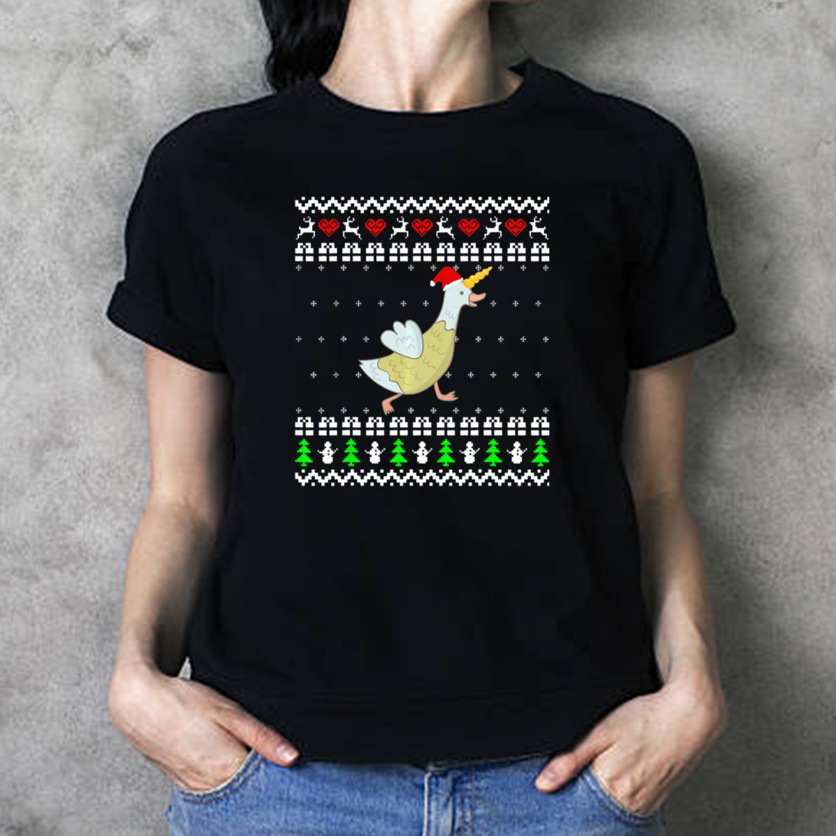 Embrace the whimsical charm of the holiday season with our Unicorn Goose Reindeer Hearts Santa Hat Ugly Christmas T-Shirt! Perfect for festive gatherings, themed parties, or just spreading cheer in your daily casual wear, this unique fan-made design adds a touch of fun to your wardrobe. Crafted for comfort and style, it’s a delightful way to showcase your love for all things merry and bright!