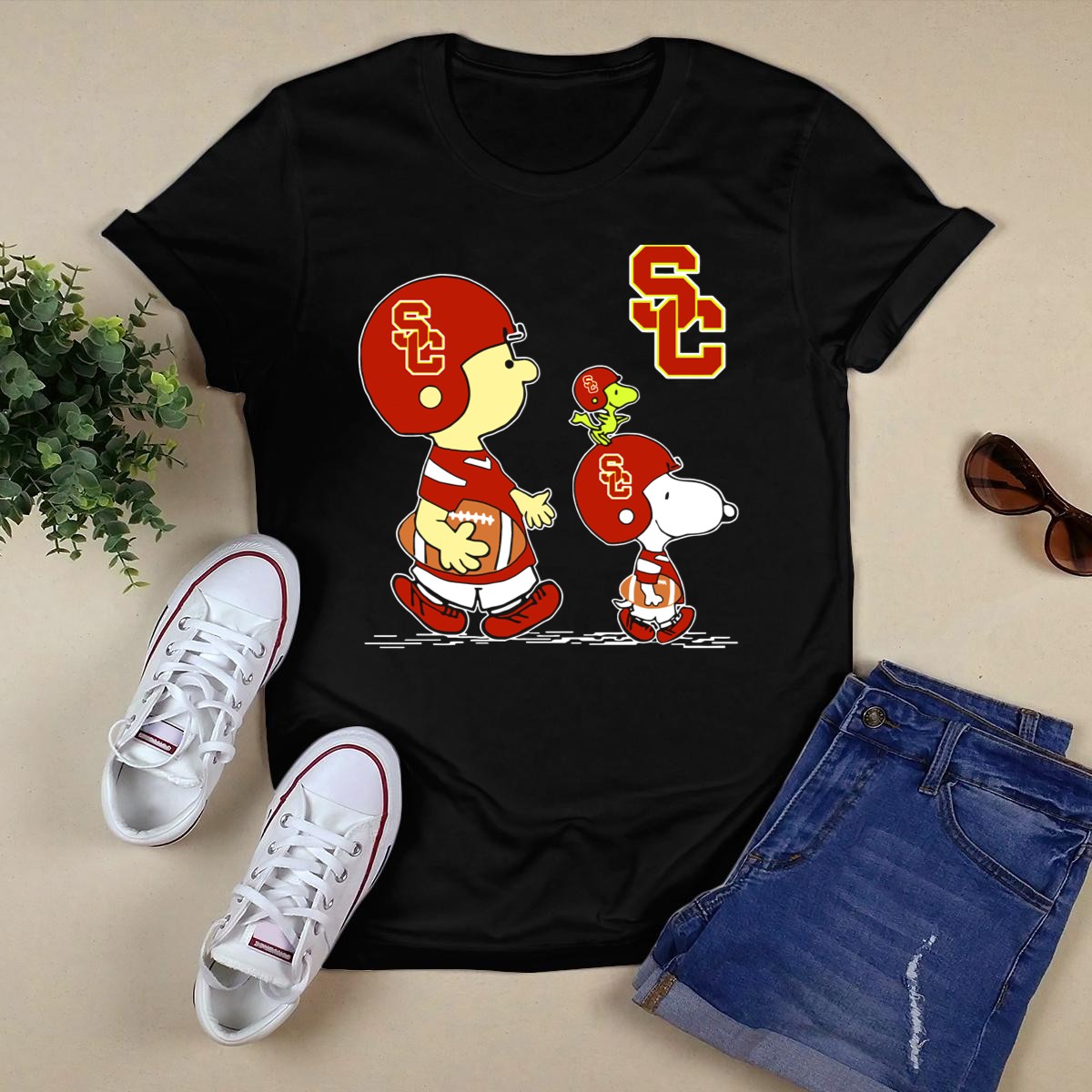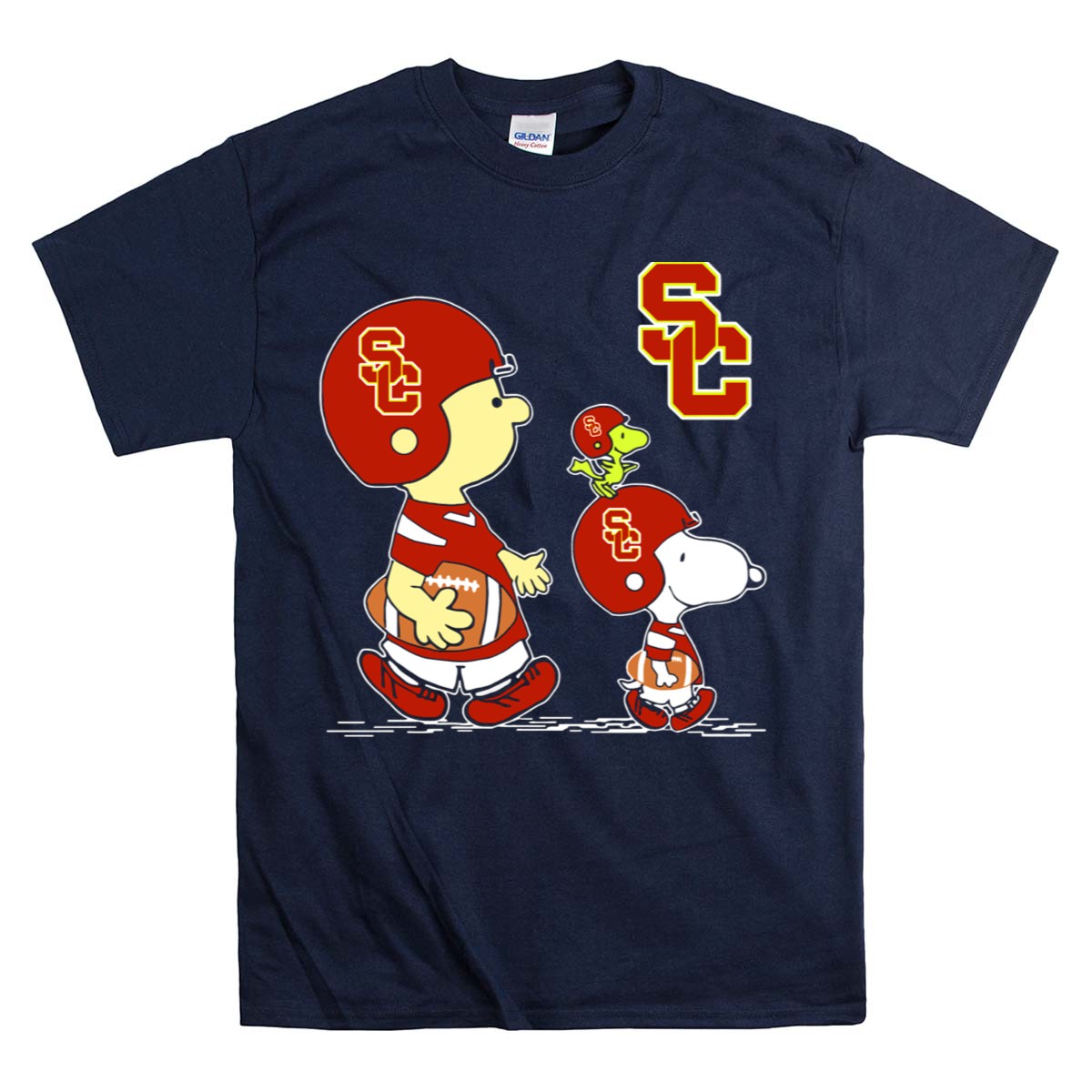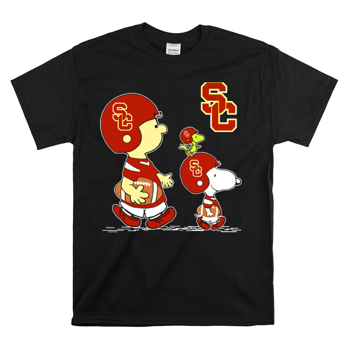 Show your school spirit and love for football with our Usc Trojans Sc Football Peanuts Snoopy And Woodstock In Helmets T-Shirt! This fun and playful design features your favorite Peanuts characters, Snoopy and Woodstock, sporting USC Trojans helmets, making it the perfect choice for fans of all ages. Ideal for casual outings, themed events, or just everyday wear, this t-shirt is a must-have for any Trojans supporter looking to showcase their pride in a unique and stylish way.