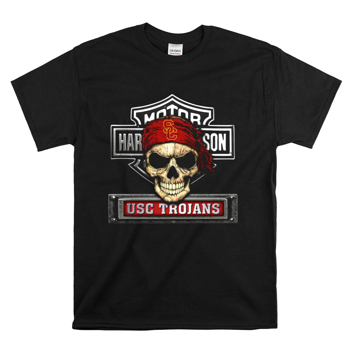 Show your fierce Trojans spirit with our Usc Trojans Skull Bandana Motor HD T-Shirt! This graphic-printed tee is designed for die-hard fans who want to stand out at games, themed events, or while enjoying a casual day out. Made for comfort and style, it’s perfect for anyone who wants to showcase their love for the Trojans in a bold and unique way. Proudly printed in the USA, this shirt combines fan pride with everyday wearability.