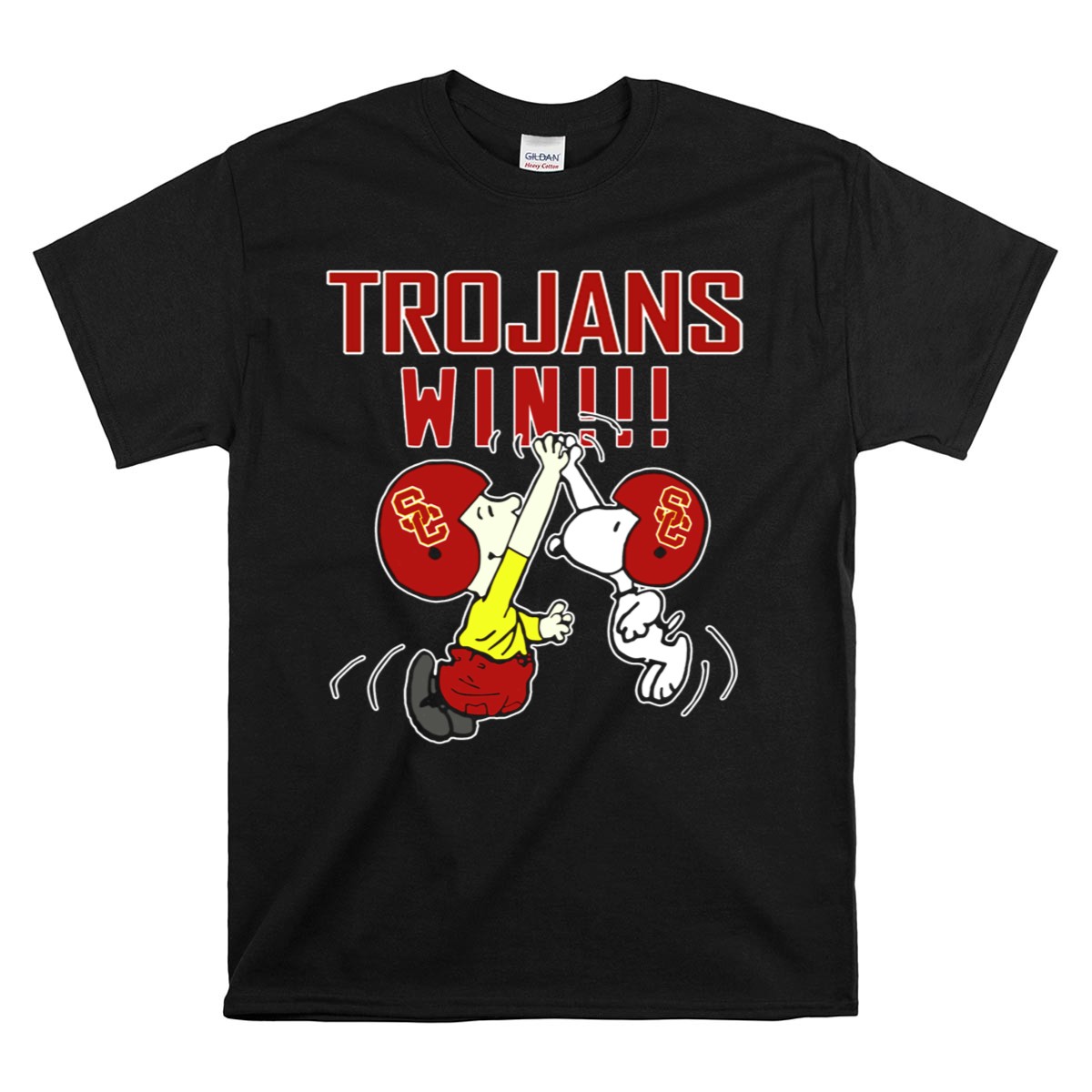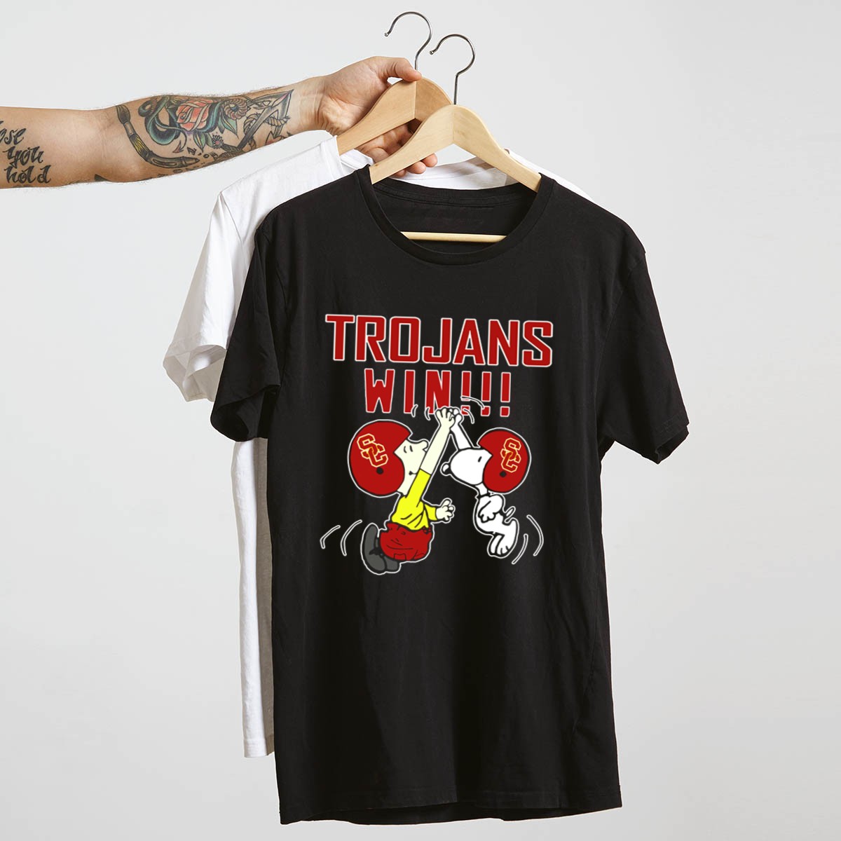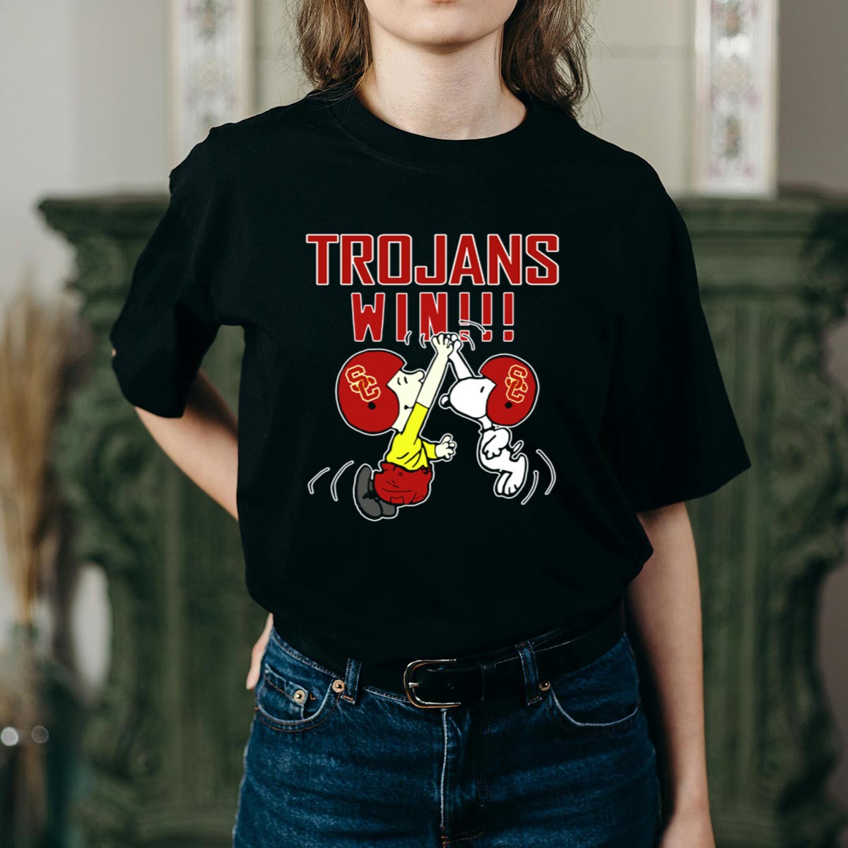 Celebrate your love for the USC Trojans with this fun and whimsical Usc Trojans Win Peanuts Snoopy And Charlie Brown Football Celebration T-Shirt. Perfect for fans of all ages, this tee combines classic cartoon charm with team spirit, making it an ideal choice for casual outings, game days, or themed events. Crafted with a fan-made design printed in the USA, this shirt stands out as a unique piece that showcases your enthusiasm for both the Trojans and beloved Peanuts characters.