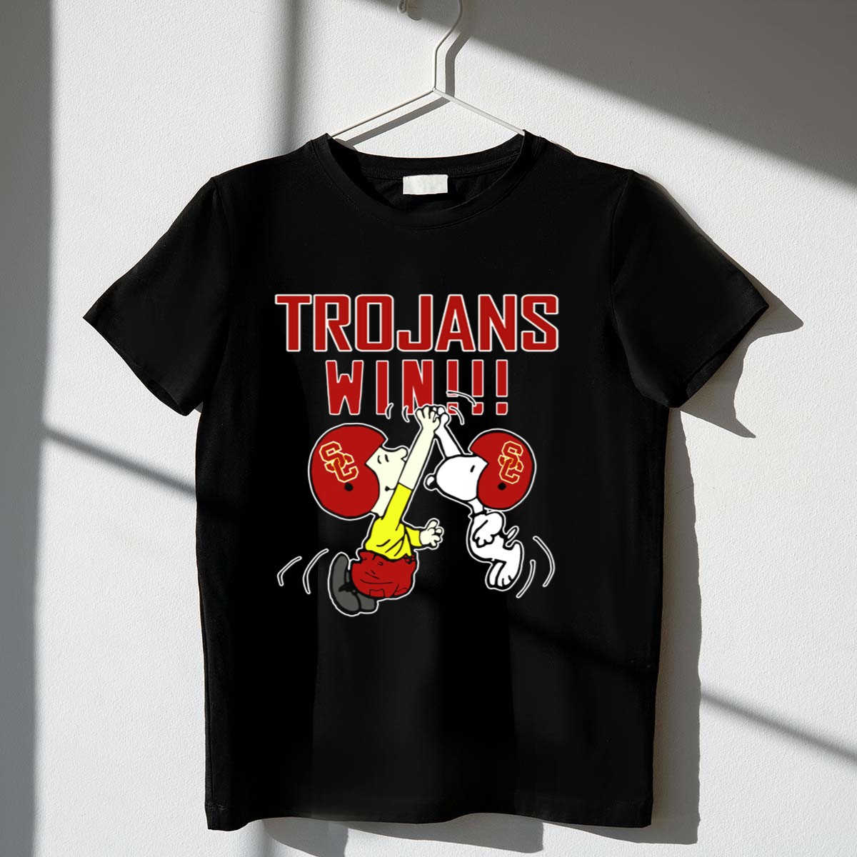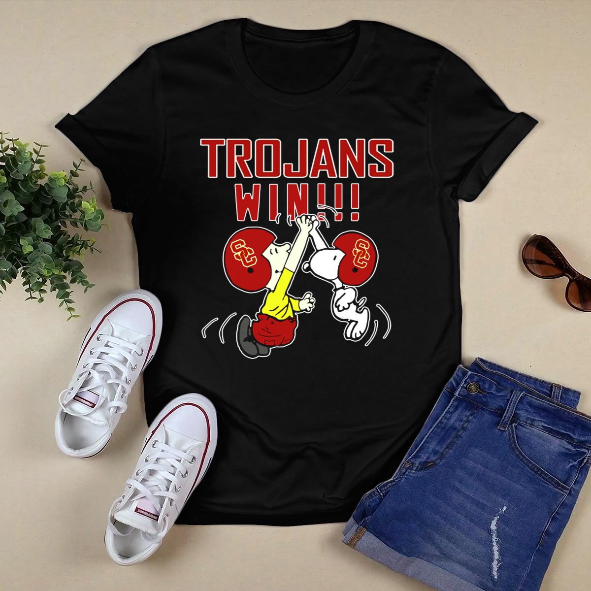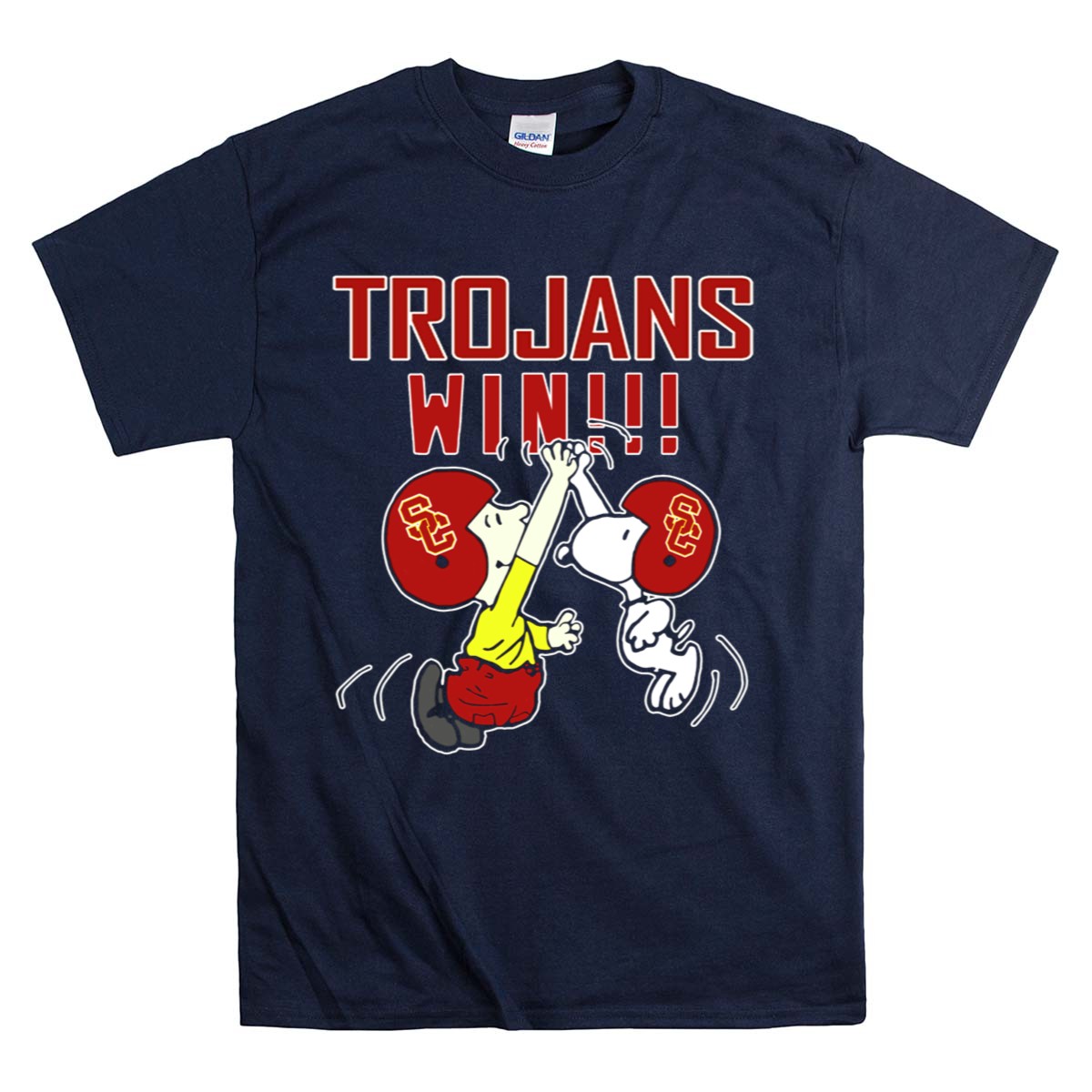 Celebrate your love for the USC Trojans with this fun and whimsical Usc Trojans Win Peanuts Snoopy And Charlie Brown Football Celebration T-Shirt. Perfect for fans of all ages, this tee combines classic cartoon charm with team spirit, making it an ideal choice for casual outings, game days, or themed events. Crafted with a fan-made design printed in the USA, this shirt stands out as a unique piece that showcases your enthusiasm for both the Trojans and beloved Peanuts characters.