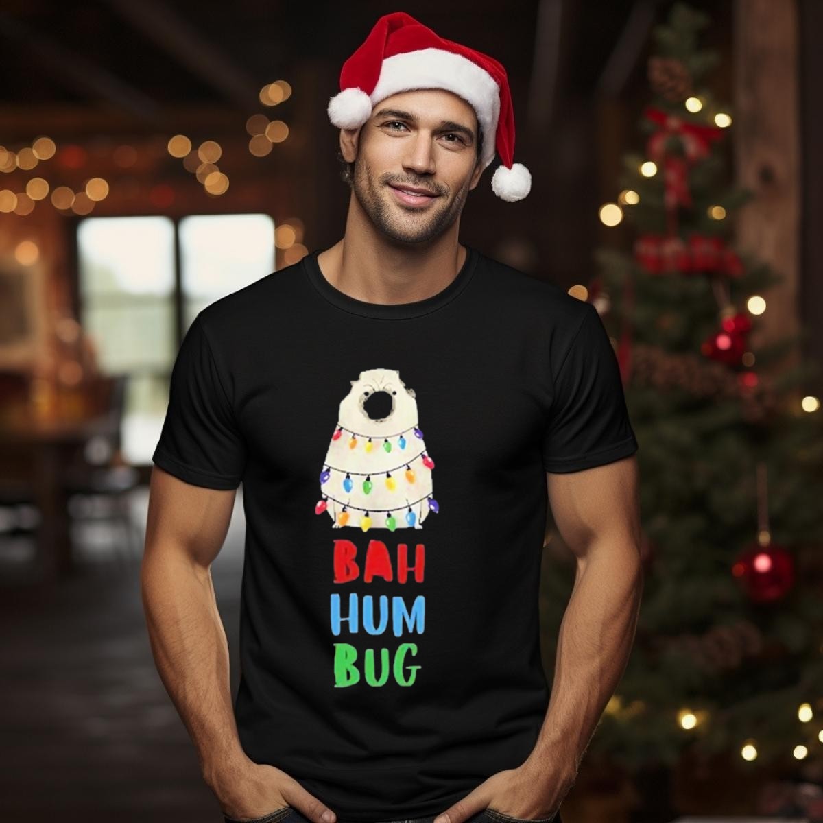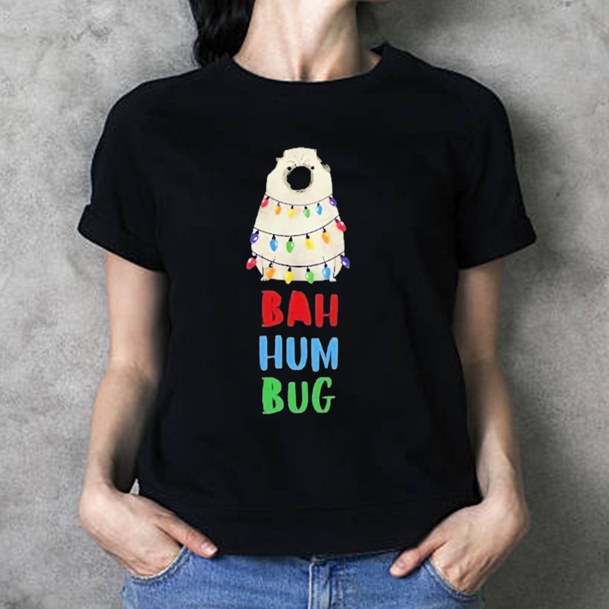 Celebrate the holiday season with our Vito The Pug Bah Hum Bug Christmas Lights Wrapping T-Shirt, perfect for dog lovers and festive spirits alike! This whimsical design features Vito, the adorable pug, wrapped in colorful Christmas lights, making it an ideal choice for casual wear, themed events, or simply to spread some holiday cheer. Crafted for comfort and durability, this shirt is sure to become a favorite in your festive wardrobe.