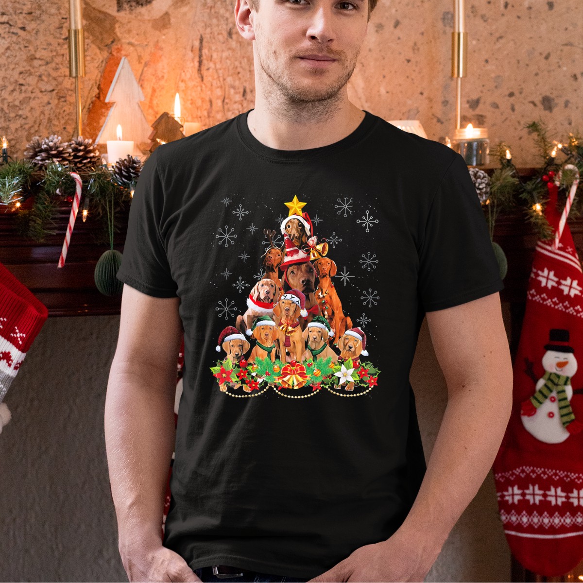 Celebrate the holiday season with our charming Vizsla Christmas Tree T-Shirt, perfect for dog lovers and festive gatherings alike! This unique design features adorable Vizslas wearing Santa hats, surrounded by snowflakes and holly, making it an ideal addition to your casual wardrobe for themed events or daily wear. Crafted for comfort and style, this shirt not only showcases your love for Vizslas but also adds a cheerful touch to your holiday festivities.
