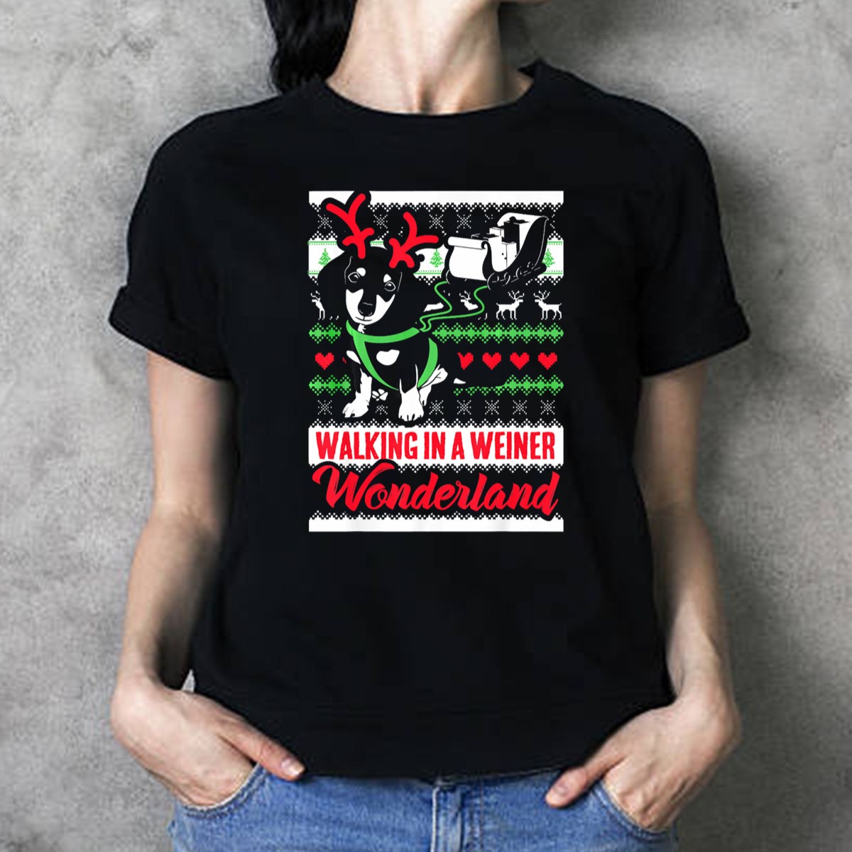 Walking In A Weiner Wonderland Dachshund Reindeer Christmas T Shirt